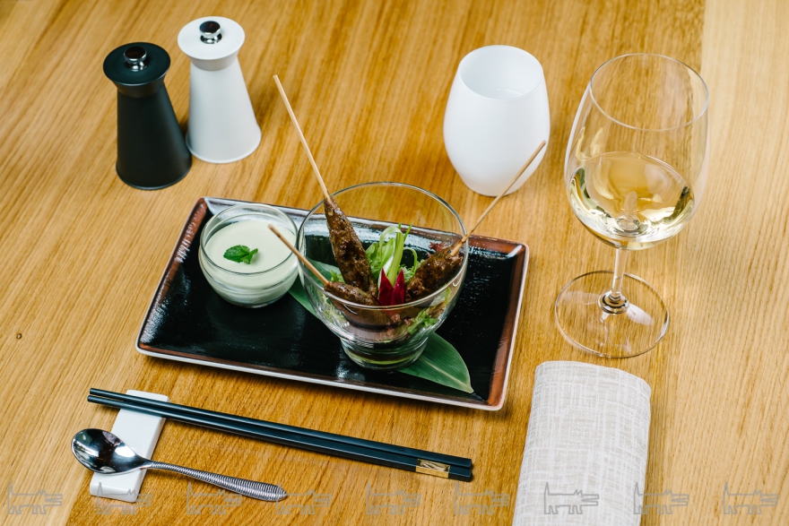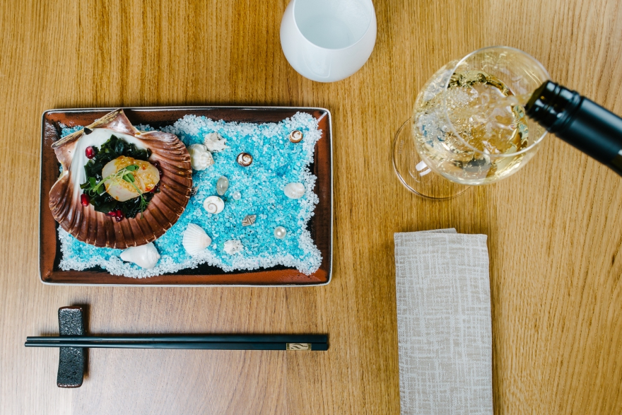 Здесь можно будет непринужденно провести время за бокалом вина за суши-стойкой; для компании подойдет уединенный длинный стол с богатой ниспадающей хрустальной люстрой или большой круглый стол из единого спила дерева.