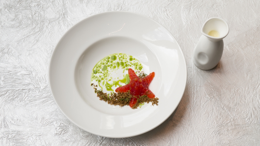 - вырезка оленя с можжевеловым соусом и печёным корнем сельдерея
