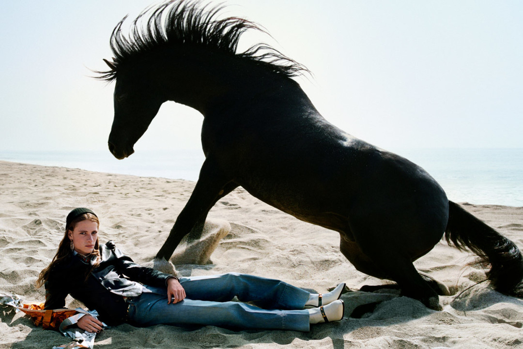 В новой кампании Gucci размышляет о том, что лучшие друзья людей не собаки, а лошади. Животные сопровождают моделей в самолетах и машинах, завтракают и обедают вместе с ними, купаются в бассейне и делят все пополам – даже яблоко. На кадрах с участием Лизы, например, можно увидеть коня белоснежного цвета на пассажирском сидении кабриолета или на заднем фоне снимка вместе с коллегой девушки по съемочной площадке. Художественным руководителем съемки стал Йоргос Лантимос – режиссер антиутопичного триллера «Лобстер» и костюмной драмы «Фаворитка», которую мы запомнили отсутствием главных мужских ролей.