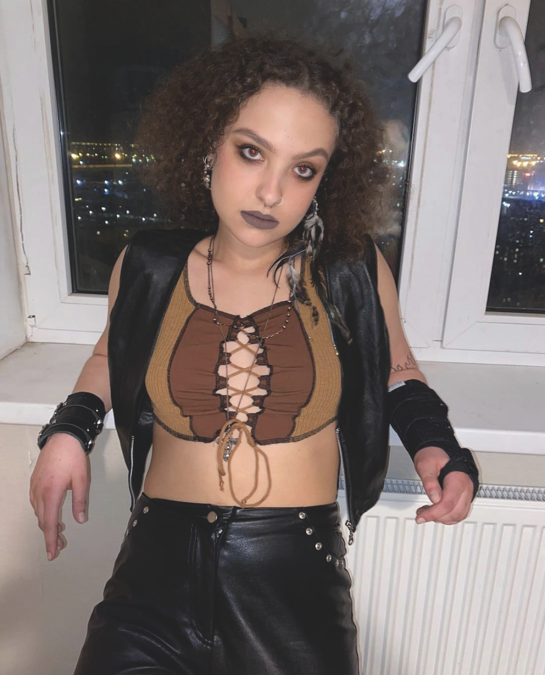 «Когда-то я прямо увлекалась модой, а потом забила, начала слушать тяжелую музыку и металл, и теперь мой стиль — это выражение моего музыкального вкуса. У меня в гардеробе полно штанов, бомберов, косух, футболок с мерчем групп, которые я слушаю. Обычно я покупаю их на концертах, что-то нахожу в секондах. Моя любимая футболка — с изображением группы Type O Negative: купила ее в секонде в Мадриде за 5 евро, хотя везде она стоит 90».