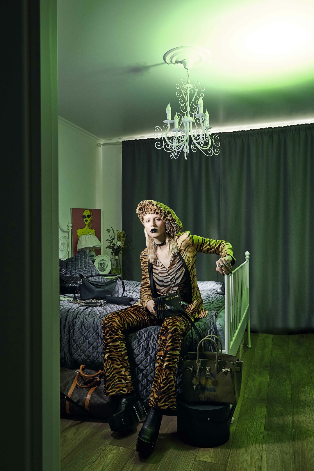 Я обратила внимание, что каждая моя фотография со сшитыми для меня луками собирает нереальное количество запросов, где все это купить. Я и сама с радостью покупала бы готовое, но наша индустрия до сих пор довольно дохлая в плане идей. Многие бренды абсолютно одинаковые. То, что нравится мне, вообще негде брать. Крупные западные марки ушли, и я решила, что самое время на- чать заниматься креативом самой. Мне по кайфу шить, фотографироваться, придумывать. Я не делаю ничего нового, моя коллекция — компиляция из самых любимых вещей. Я к ним привязываюсь: любимую шубу носила лет десять, как и классическую дубленку-авиатор — купила новую только потому, что моя просто рассыпалась от старости. Поэтому я не понимаю нападок на натуральный мех — такую вещь ты проносишь десятилетия, а мех чебурашки, который тоже производится далеко не самым экоответственным образом, прослужит максимум два-три сезона.