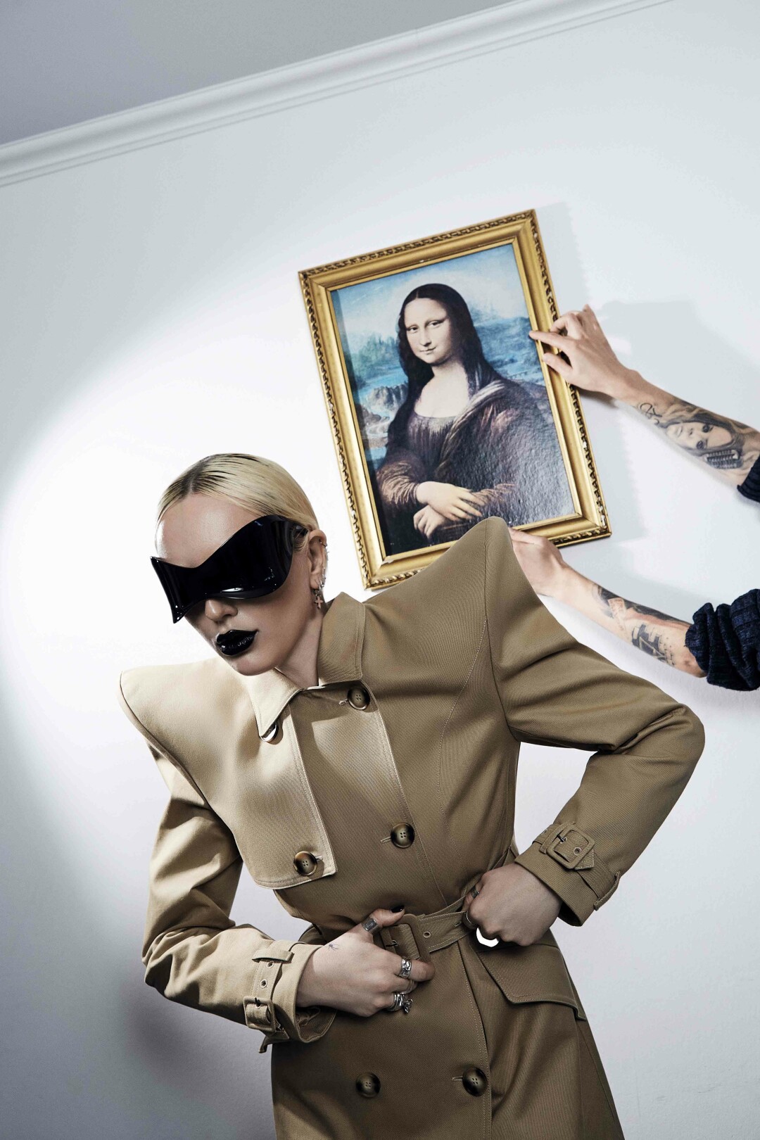 В первой коллекции я выпустила бот- форты, короткую шубу из яка, то самое платье с принтами Дали и кожаную куртку. Нашла обувщиков в Кирове, по- еду дорабатывать модель сапог-штанов, хочу сделать их не на шпильке, как прототип, а на маленьком каблуке, чтобы ходить в них целый день. Конечно, мои вещи на любителя, но я бы и не хотела, чтобы их покупал каждый. Выпустив первый дроп, я огребла кучу хейта, причем именно от русских. Это так странно. Западный мир моды гораздо более доброжелателен. Если кто-то делает что-то необычное, нужно это поддерживать, а не гасить. Я всегда так и поступаю. А про меня строчили целые полотна ненависти. Думаю, такая реакция — от скуки или неуверенности. Ты попробуй сам что-то воплоти, а потом критикуй. Я абсолютно не скрываю, что у меня вторичный дизайн — я переделываю то, что люблю. А одинаковые бежевые свитера — это не копирование? Но я не пощу об этом гневные телеги текста. Я сконцентрирована на себе и своем развитии. Хочется сказать: занимайтесь собой!