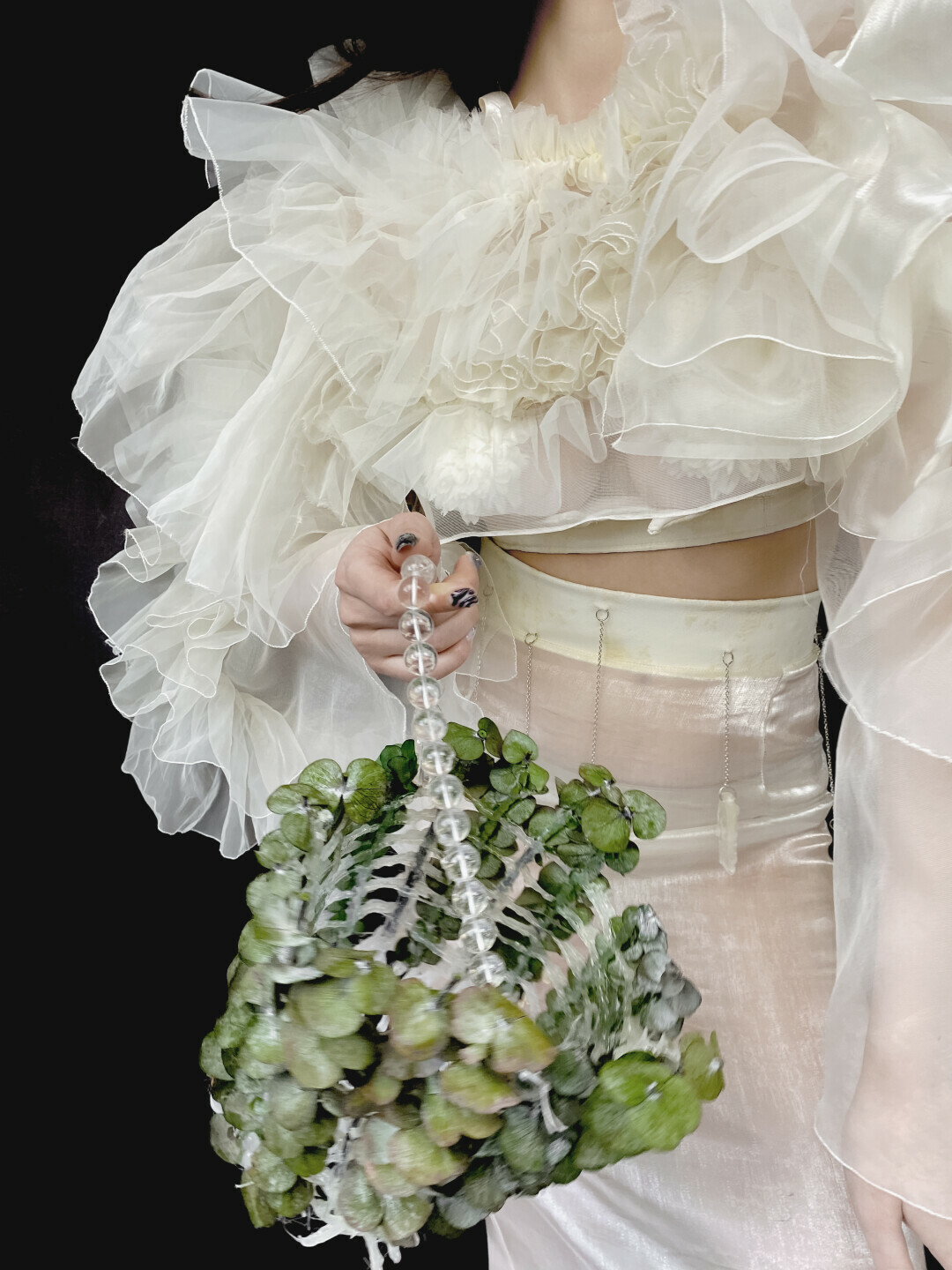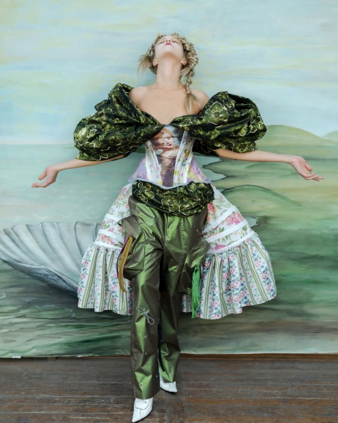 «Я создавала этот концепт на основе своих ощущений от восприятия мира. Пик моих эмоциональных возбуждений пришелся на прогулки в лесу. Я узнавала духов в деревьях, видела маленькие города в траве, наблюдала за жизнью стрекоз в роскошных платьях. Взяв свое воображение за единицу вымышленную, я создала из этого сказку», — говорит дизайнер Софья Тихонова.