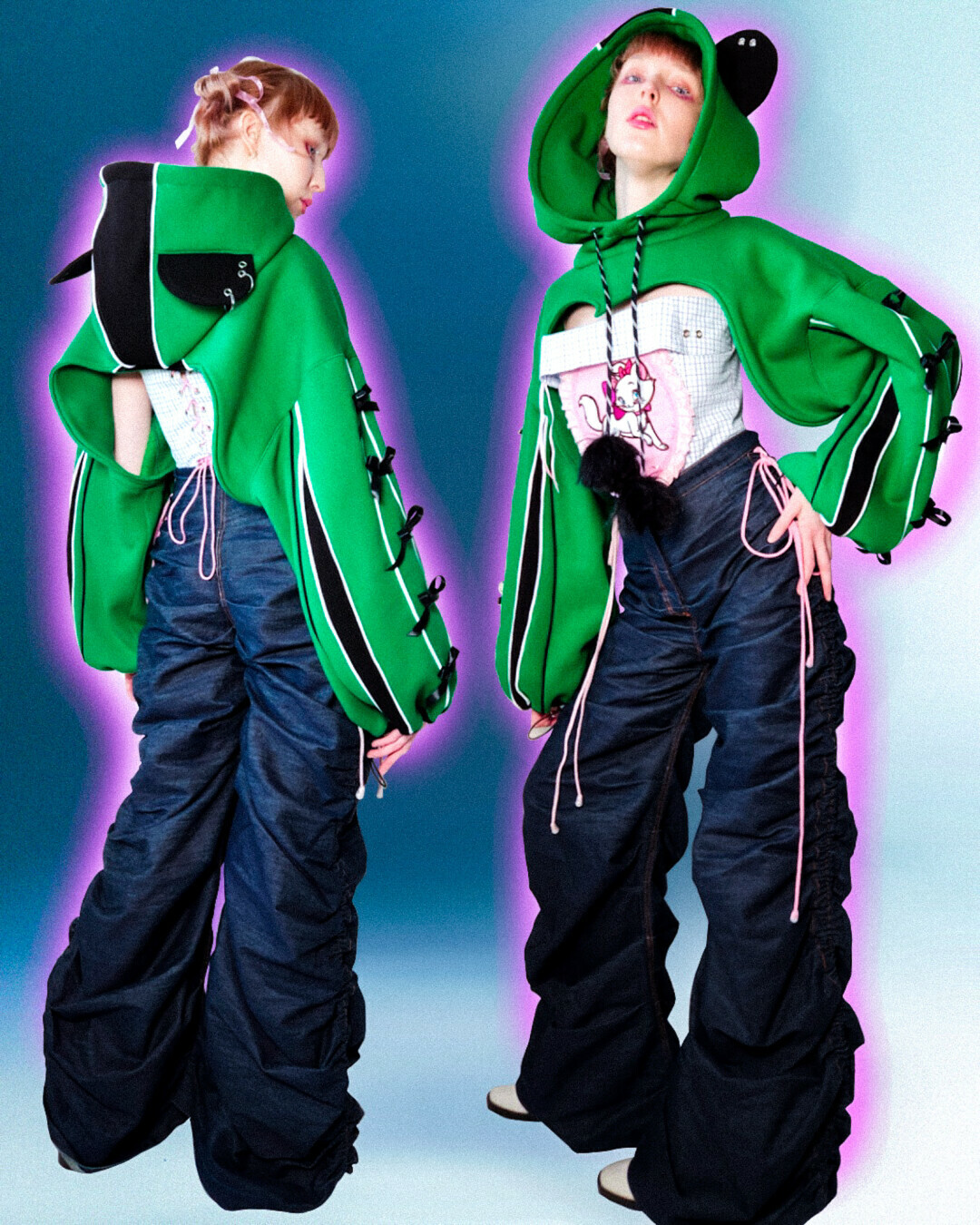 Молодая марка SOTKINA, основанная в 2022 году, преобразовывает хаос в гармонию. Главная идея коллекции ILOVEU — аниме «Евангелион» с его философией. Дизайнер вдохновлялась умело переданным чувством одиночества, меланхолии, в совмещении с пониманием, что нужно жить и стараться быть счастливым, любить себя, ведь единственный человек, который может тебе помочь — это ты сам. Игрушки, использованные в коллекции, отсылают к наивности и простоте человеческой души. Главные материалы — искусственный мех, экокожа, плащевая ткань, а также вельвет и трикотаж. Алина Соткина использовала различные приемы декорирования, например, принты, рюши из кружевных, атласных и капроновых лент, объемную стежку на синтепоне, стразы на кожзаме.