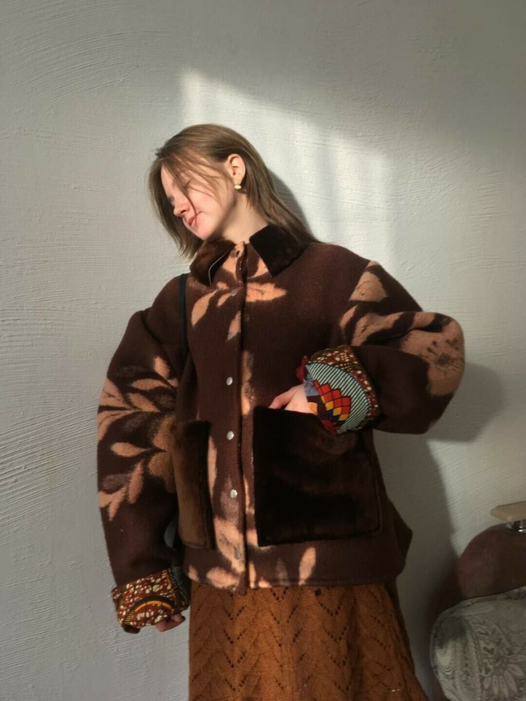 Коллекция Ани Рассказовой началась с поезда, уносящего ее далеко от дома. Согревала в старом плацкарте одна вещь — шерстяное советское одеяло. «Подумалось тогда, что это, пожалуй, самый теплый материал на холодную петербургскую зиму, потому что в нем ностальгия и тоска по яблоневому саду», — говорит дизайнер. Несколько лет размышлений, поиск формы, смысла, и появилась первая куртка. Аня использует винтажный текстиль на подклад, кружева, послереволюционную вышивку и бахрому на украшения. «Нам приятно работать со старыми ненужными материалами, которые мы находим. Это всегда детская игра и неотработанный перфоманс. Услышал музыку — танец уже сам себя сочинил». Одежду-ностальгию по родному дому уже носят в России, Грузии, Франции, Германии и Англии.