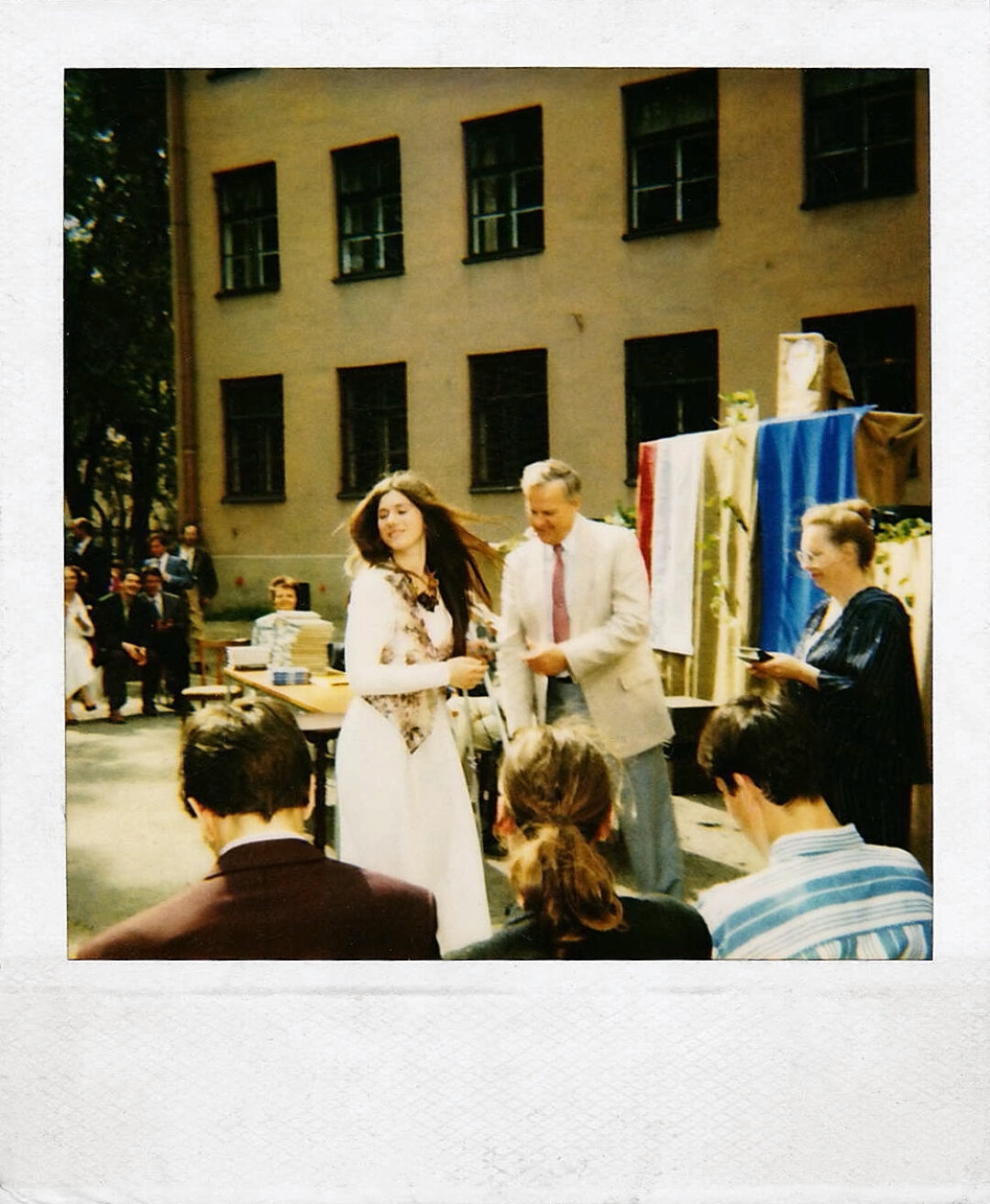 Первый выпуск в Классической гимназии №610 отмечали так: мэр Санкт-Петербурга Анатолий Собчак вручает дипломы, праздничный пикник — в Петропавловской крепости, историк и соавтор этого уникального педагогического эксперимента Лев Лурье произносит тост-напутствие «Все ученики 610-й поступят в СПбГУ» (сбылось!), символом афтерпати стал мем «Жизнь — профанация либидо» (не спрашивайте! И на самом деле вместо жизни можете подставить вообще любое слово!). А выпускное «джульеттовское» платье с жилеткой вполне в духе Chloé Чемены Камали мне придумала Алла Григорьева: прекрасный дизайнер, художник по костюмам и сестра поэта Геннадия Григорьева, автора поэмы «День Зенита» и контрибьютора любимейшего детского журнала «Трамвай». Я, конечно, «Джульеттой» быть не желала, а хотела готический гранж в цветочек, но фатум и моя мама Лена Милорадовская были неумолимы. Впрочем, как и всегда. Сейчас понятно: и фатум, и мама были правы. Впрочем, как и всегда. И Анатолий Александрович Собчак этот нимфакор оценил: «Вы, говорит, может, даже и не гимназистка, а смолянка!» — и вручил мне грамоту за выдающееся успехи в изучении древнегреческого языка. Что ж, пользуюсь случаем и передаю привет и спасибо моему учителю древнегреческого Михаилу Поздневу: успехи, конечно, были не такими уж и выдающимися, но десять строчек из «Одиссеи» на языке оригинала продекламировать могу — и с tone of voice Иосифа Бродского.
