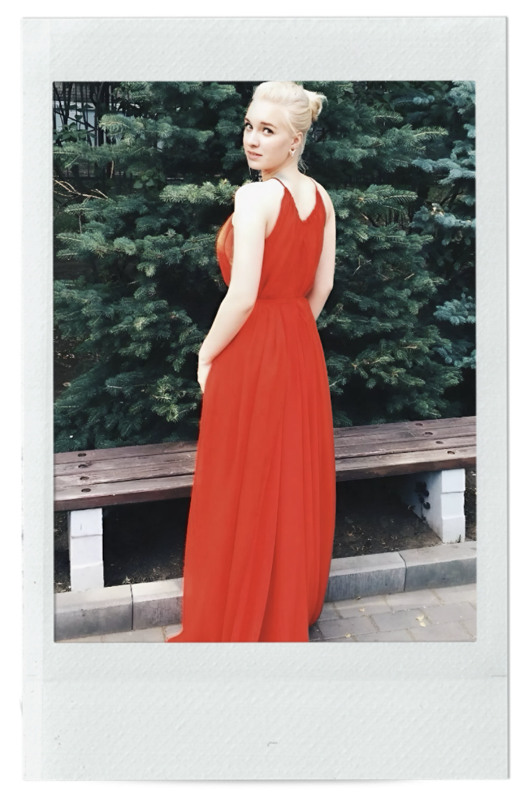 Мой выпускной случился в далекие предмиллениумные времена — динозавров уже не было, а ТЦ и ДЛТ еще не было. Поэтому платье было найдено в каком-то ноунейм-магазине на Гражданском проспекте: двуслойный футляр, скроенный по косой! Кажется, из шелка и кажется, авторства какой-то итальянской фабрики. На верхней части — деликатная инкрустация прозрачными или в тон мелкими кристаллами. На фото почти незаметно, а в жизни выглядело, как роса. С цветом Carmine Rose (если свериться с Pantone) этот декор мэтчился, получается, не только визуально, но и метафорически. С удовольствием надела бы еще раз и два и три, но вероятность попасть в 40 размер уже так же туманна, как воспоминания о том вечере. Все, что от них осталось, — это сброшенные на заливе каблуки, фонтаны игристого, поцелуи и прыжки под Blur и Red Hot Chili Peppers.