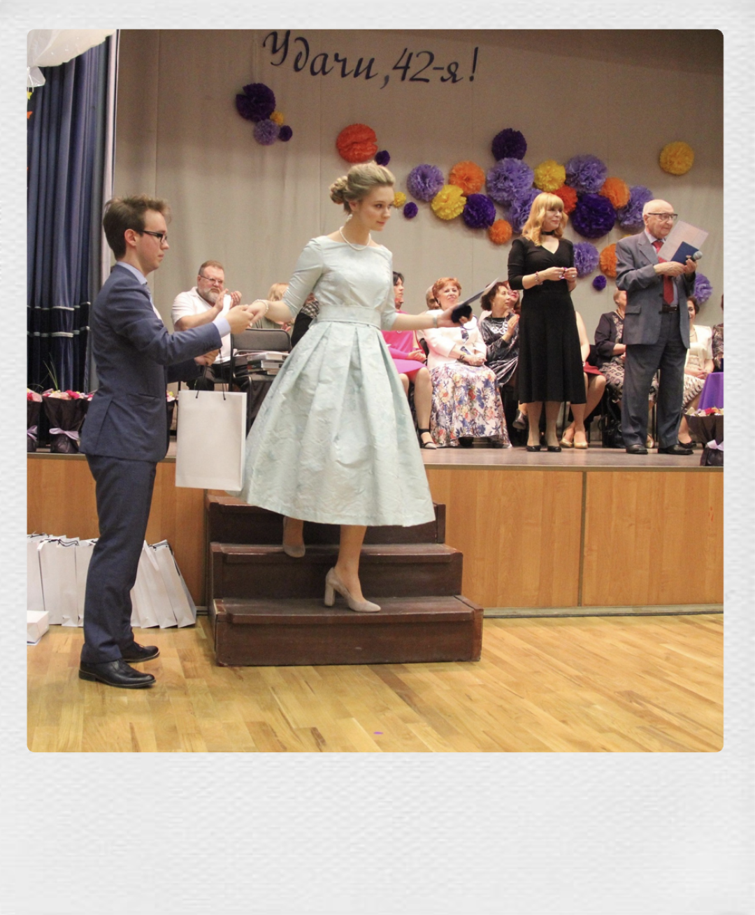 Школьников 1990-х отговаривали от поступления в московскую гимназию №1543, намекая, что «директор Юрий Владимирович Завельский уже стар и вот-вот уйдет на пенсию». Спустя двадцать лет моя мама выслушивала то же самое — в итоге сил и педагогического энтузиазма Юрия Владимировича хватило как на меня, так и на параллель на год младше. Ну а мой выпускной холодного лета 2017 года (хуже, чем сейчас!) спасли платье из плотной пастельно-бирюзовой парчи, могучая кучка грелок на веранде и календарная удача: в городе гремел ММКФ, и при резерве ресторана мы на один день разминулись с «белой вечеринкой» Никиты Михалкова (иначе в лучших традициях аутдор-шика праздновали бы на соседней лужайке). У нас, как у 42-й параллели, лейтмотивом праздника стал цикл романов «Автостопом по галактике» Дугласа Адамса. Торт тоже был космическим (буквально) — урвала и жадно съела шоколадный Юпитер, так что теперь приходится отслеживать все астрологические транзиты планеты (ты то, что ты ешь).