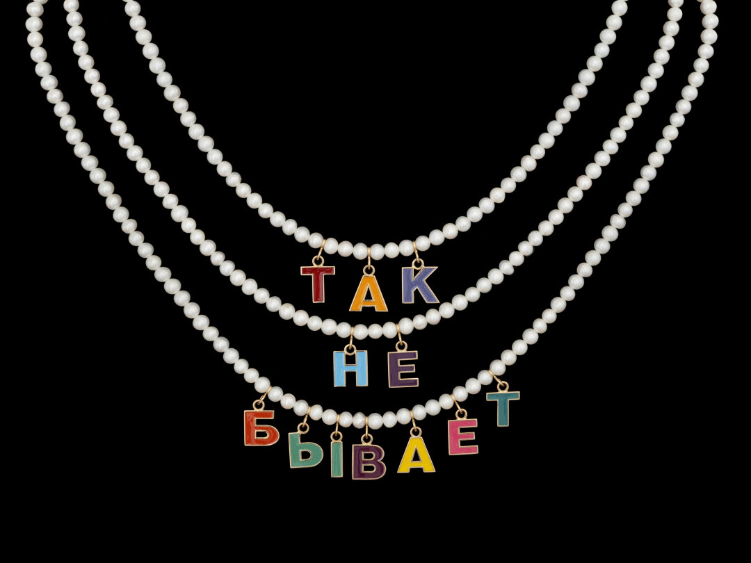 АЛИНА: Меня очень давно привлекает ювелирка. Это тема, которая манит. Пару лет назад я нашла ювелира, с которым у нас случилось взаимопонимание, и он сделал по моим эскизам два ожерелья с надписями «Боже» и «Сказка Ложь». Я же люблю роскошные дворцовые интерьеры, церковное убранство, тяжелые ткани, парчу, то есть интенсивные проявления материи. И мне важно, чтобы это было как бы немножко лакшери. И ювелирка — это вот прям оно. И сейчас намечается вторая попытка захода в ювелирную историю. Мы делаем три колье на основе моих работ. И премьера будет на Cosmoscow в сентябре. Это совместный проект с коллекционерами совриска Денисом и Милой Пак. Они в этом году впервые показывают публике свое собрание. И поскольку Мила тоже любит ювелирные изделия, мы с ней решили сделать три колье небольшим тиражом.