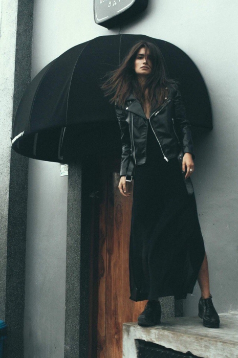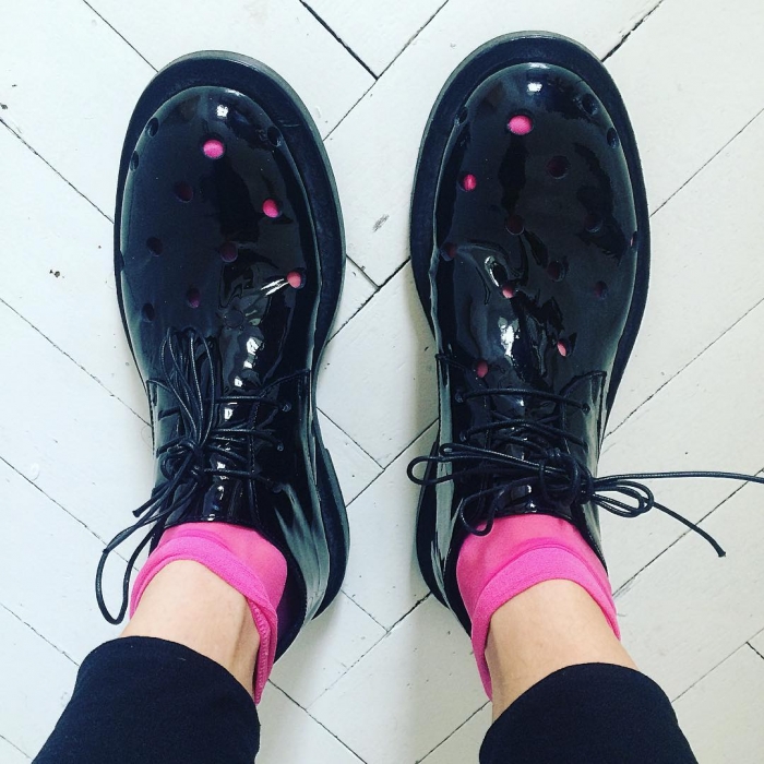 Вопрос с обувью — самый важный: прогулки до утра по Петербургу никто не отменял! Поэтому я выбираю высокие мартинсы из черной кожи, которые неплохо смотрятся с коллекцией моих рокэндрольных косух. Никаких кроссовок с платьями! Расслабленно чувствовать себя можно в любой одежде и туфлях, если они опрятны. И уж если собрались двигать телом, не берите с собой сумку — танцевать вокруг нее не комильфо.