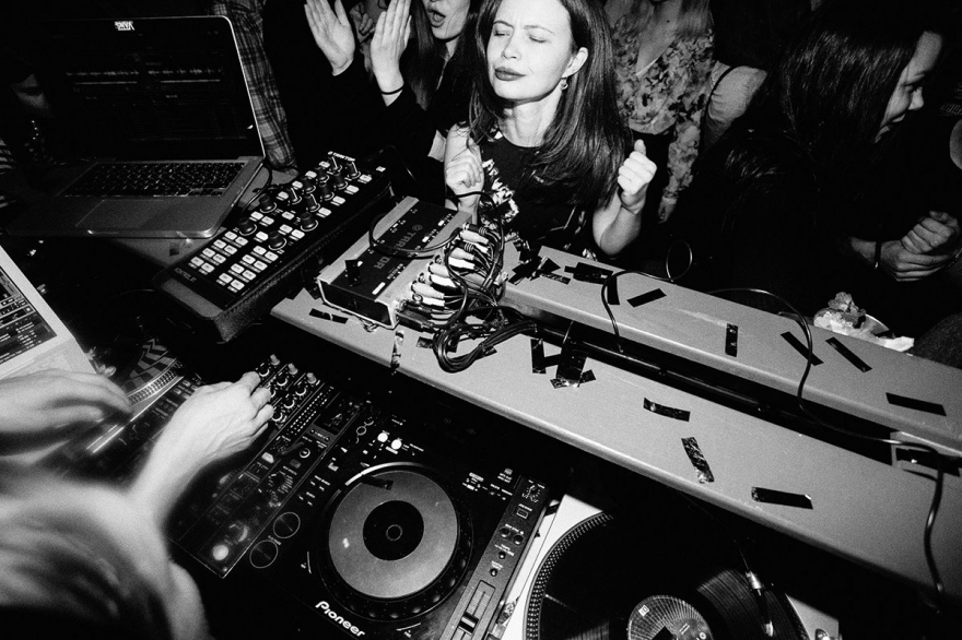 Перед любым выходом в свет (в данном случае — во тьму) мне требуется час времени для сборов, включая душ, чашку кофе, макияж и выбор наряда. Особый ритуал — накрутить фирменную пати-прическу, по которой меня сразу идентифицируют над толпой на танцполе и запоминают заезжие гастролеры. Сейчас гулька на макушке стала мейнстримом, но я с ней хожу уже десять лет — мои кудрявые космы живут своей фривольной жизнью, а во время танцев не хочется тратить время на постоянное их укладывание в нужную сторону.