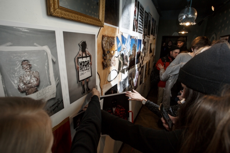 Каждый снимок Дмитрий предусмотрительно распечатал на принтере, украсив деревянными рамками, зеркалами и обрывками крафтовой бумаги. Чтобы увидеть некоторые экспонаты (например, с обнаженными снимками художника), гостям приходилось открывать занавески и открытки с авторскими стихами. Фотографии, которые уже оценил американский Vogue, можно увидеть в баре «Пиф Паф» на Набережной канала Грибоедова — там же висит конверт с пожеланиями (и признаниями в любви!) современному искусству.