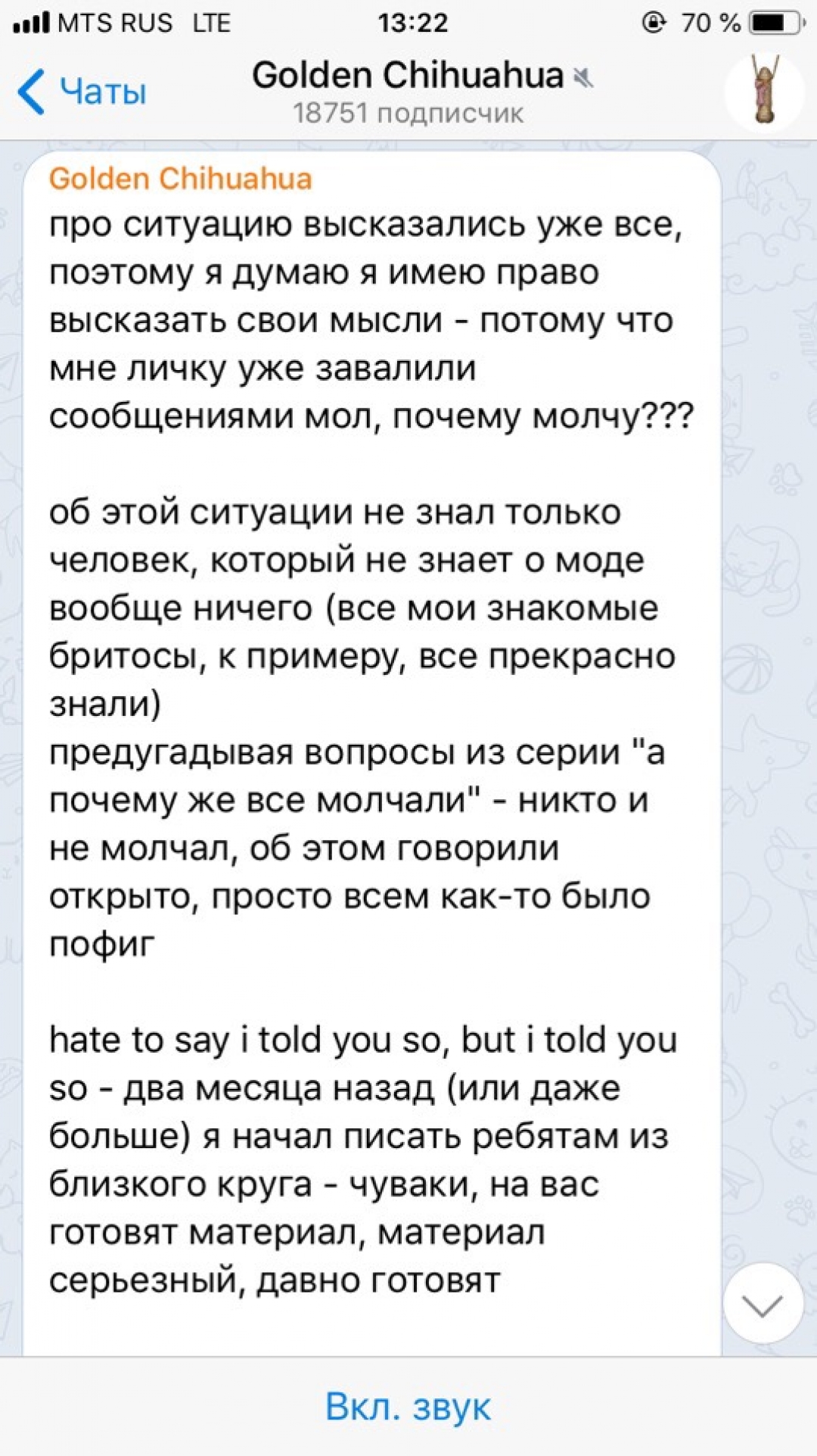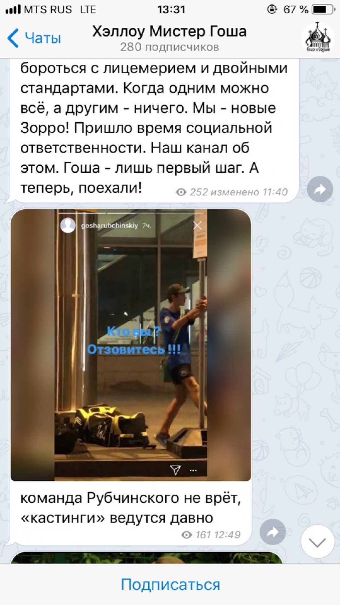 На почве скандала в Telegram даже появился канал «Хэллоу Мистер Гоша», где появляются новые подробности и комментарии. «Наша цель — не уничтожить Гошу, не разрушить его жизнь, карьеру, не разжигать травлю. Цель нашего канала бороться с лицемерием и двойными стандартами. Когда одним можно все, а другим — ничего. Мы — новые Зорро! Пришло время социальной ответственности. Наш канал об этом. Гоша — лишь первый шаг», — пишут авторы.