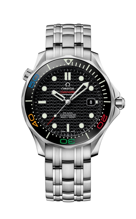 У коллекционного выпуска Omegа — спортивная фигура, минутные метки в цветах олимпийских колец и циферблат, который пошел волной, как мозаичная отделка тротуаров Копакабаны. Хотя на тротуаре он задерживаться не намерен — с водонепроницаемостью до трехсот метров только нырять!