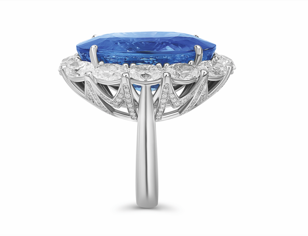 Шри-ланкийский синий сапфир в 39,27 карата (на помолвочном кольце герцогини Кембриджской камень втрое скромнее) не подвергался процедурам облагораживания. При таком весе и поддержке дюжины овальных бриллиантов это излишества.