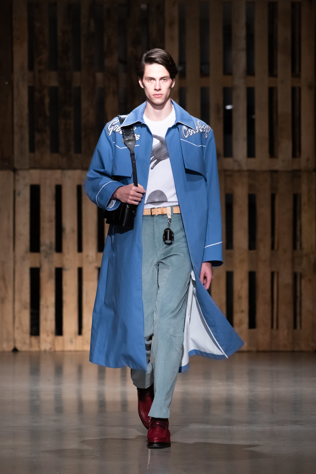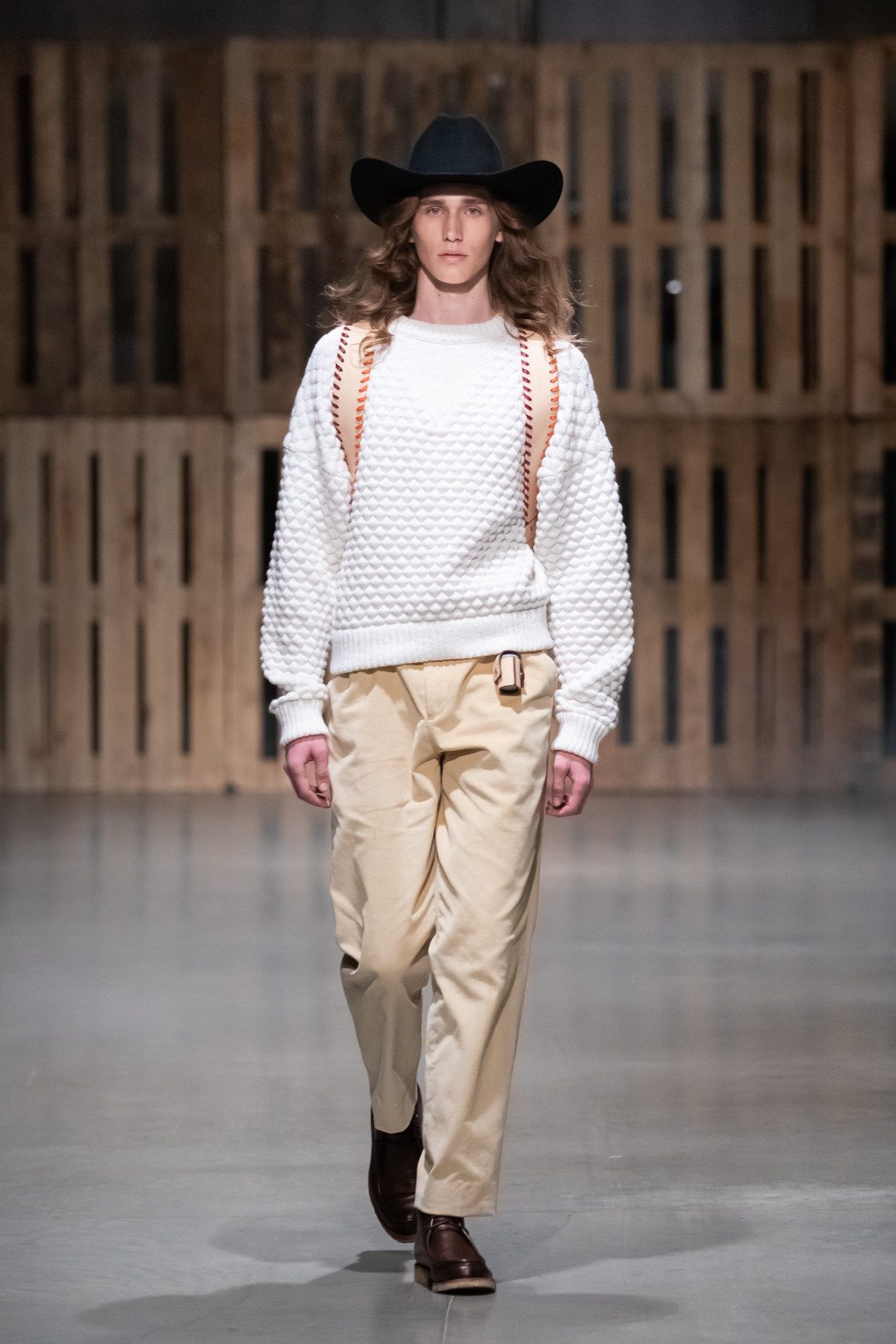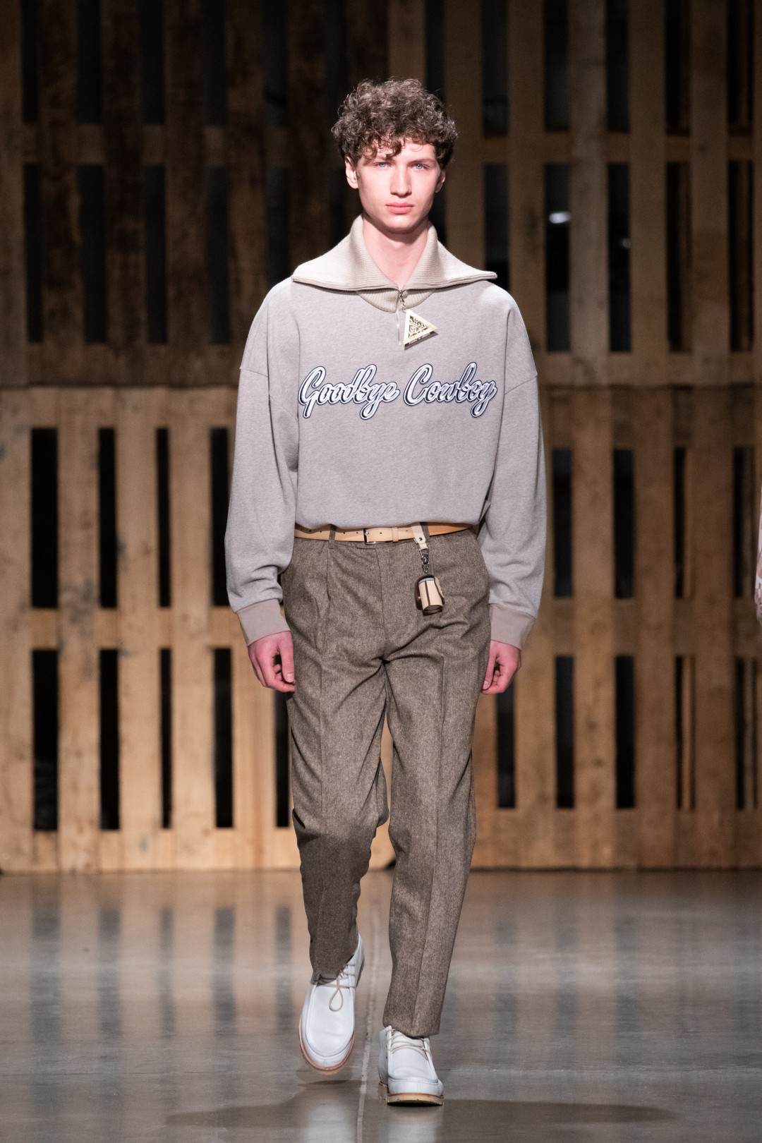 В нее вошли костюмы из шерсти и кантри-комбинезоны из денима, парки с накладными карманами и сорочки с орнаментом клетки Виши, хлопковые бомберы и школьные пиджаки, которые коллега Алексеева Тимур Войнакошка украсил графическими рисунками. В качестве аксессуаров были представлены ковбойские шляпы, чехлы для термоса, напоминающие кобуру (модели носили их крест-накрест), и ленты, выполняющие роль накладного воротника. Сама коллекция получила название «Goodbye Cowboy» и, как говорит сам дизайнер, стала личным рассказом, повествующим о прощании с иллюзиями.