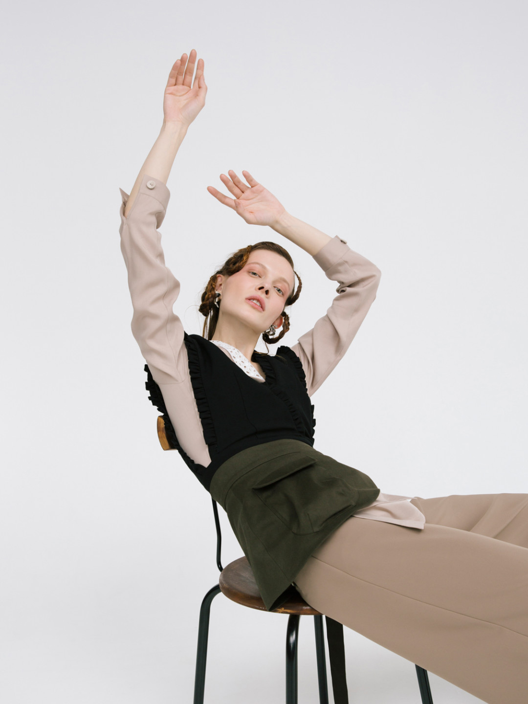 Образы, словно вдохновленные школой и детством, дополнили фартуки и накладные воротники – мечта наших мам в детстве. Ткани с советскими принтами – крупные розовые цветы, мелкие ромашки на желтом фоне – разбавили монохромные образы, а лаконичные силуэты сделали вещи универсальными и гармоничными для любого гардероба. Коллекцию уже скоро можно будет найти в концепт-сторе Ola Ola на Восстания, 1.