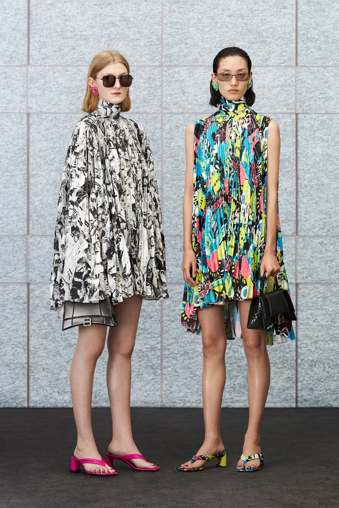 В Петербург приехала круизная коллекция Balenciaga – пиджаки с объемными плечами (привет, 90-е!), легкие платья и яркие оверсайз-свитеры появились на 2 и 3 этажах ДЛТ. Креативный директор бренда Демна Гвасалия предлагает геометричные костюмы дополнять блузой тон в тон, а пальто, сумки и колготки с одинаковым принтом носить вместе (в этом трио выделяться могут только вьетнамки – обязательно на каблуке).