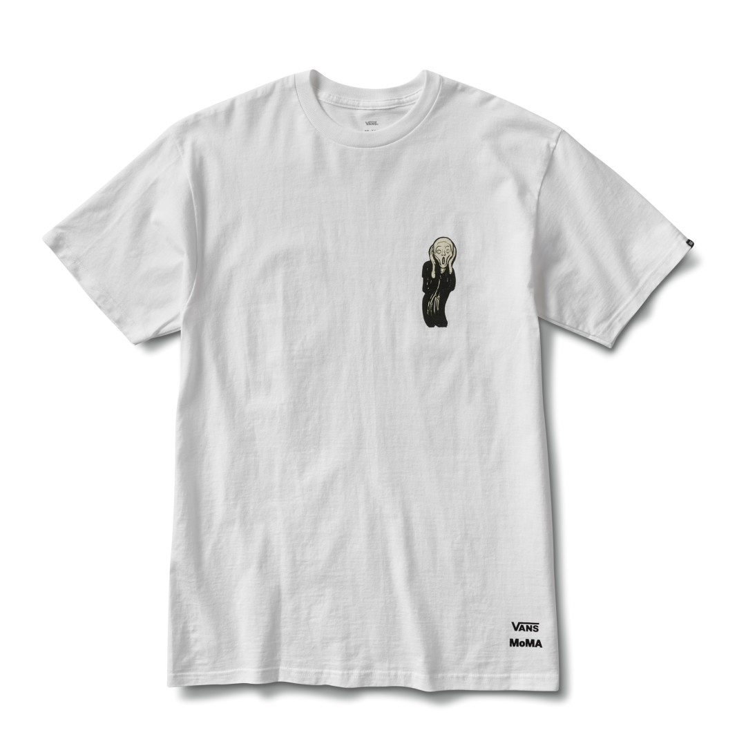Кеды Vans Era, рюкзак, футболку и худи украсила самая известная картина Эдварда Мунка «Крик» 1895 года, работу «Один: Номер 31» Джексона Поллока можно увидеть на Vans Authentic, а также на рубашке и кепке, картина «Без названия» авангардистки Любови Поповой стала основой для принтов на Vans Sk8-Hi, флисовом свитшоте и футболке, а живописец, писательница, скульптор, автор перформансов и активистка Фейт Рингголд и вовсе приняла непосредственное участие в создании дропа. Под ее руководством дизайнеры Vans и MoMA перенесли феминистские постеры Рингголд на Vans Era. «Женщина, освободи себя сама» (1971) — на правую сторону, «Свободу женщине сейчас» (1931) — на левую, а на кеды — обвинительные требования, выдвинутые Анджеле Дэвис при аресте. Модель Classic Slip-On вдохновлена иллюстрированной книгой активистки Seven Passages to a Flight, над которой Рингголд работала в 90-е годы — на ватерлинии кроссовок ее цитата, написанная, будто от руки: «Моя мама говорила, что мне придется работать вдвое больше, чтобы пройти вдвое меньше».