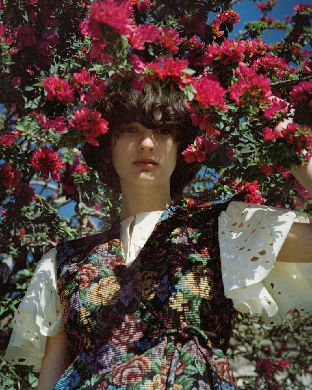 Вдохновение коллекции петербургского бренда My812 — воспоминания дизайнера Альбины Зуевой о лете, которое она проводила в гостях у бабушки. И его легко угадать по узорам, напоминающем гобелены, пыльным оттенкам шелковых платьев, цветочным принтам и ручным техникам, например, вязаным платкам или корсажам из лент.