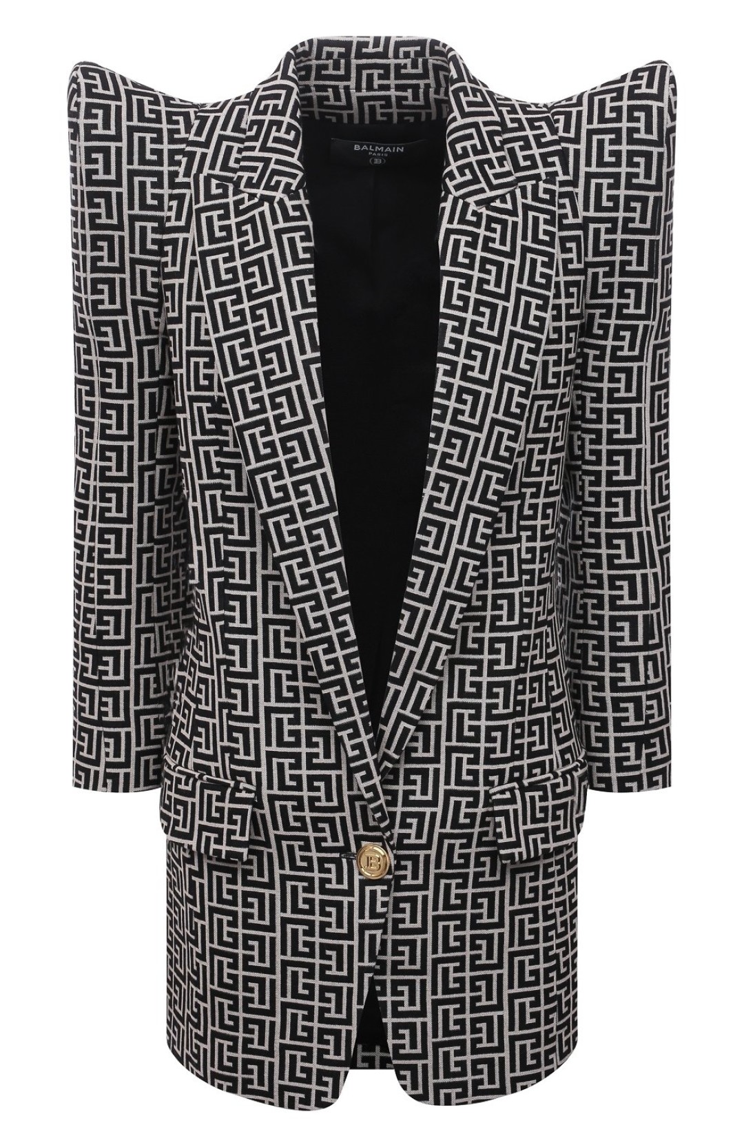 Черно-белый принт греческого меандра и золотая пуговица будто бы намекают нам на 1990-е, но Balmain — в авангарде! Только посмотрите на эти фантастические плечи! Самый актуальный силуэт сезона — перед вами. Носить — с узкими кожаными брюками.