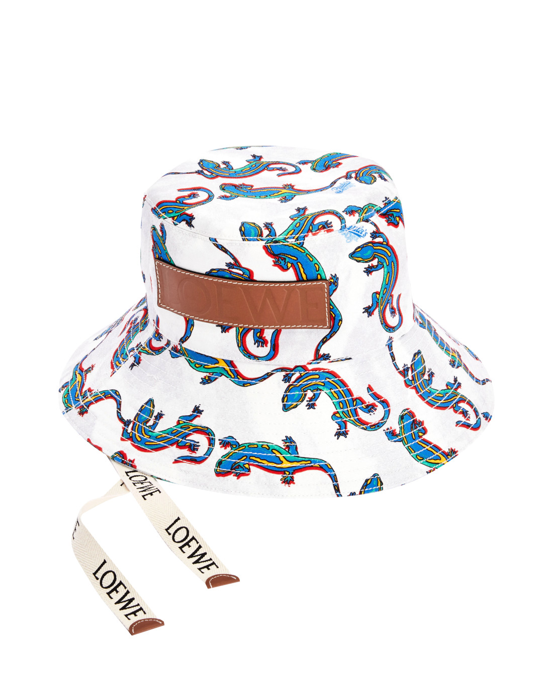 Пополняемсловарьмодныхтерминов. На очереди - it-hat. Согласитесь, но кому, как не Loewe, поставщику культовых сумок, запустить самый желанный головной убор лета? Запоминайте состав: плотный хлопок, который не деформируется, широкие ленты с логотипом, которые помогут удержать панаму на месте и нетривиальный принт в виде ящериц кислотных цветов.
