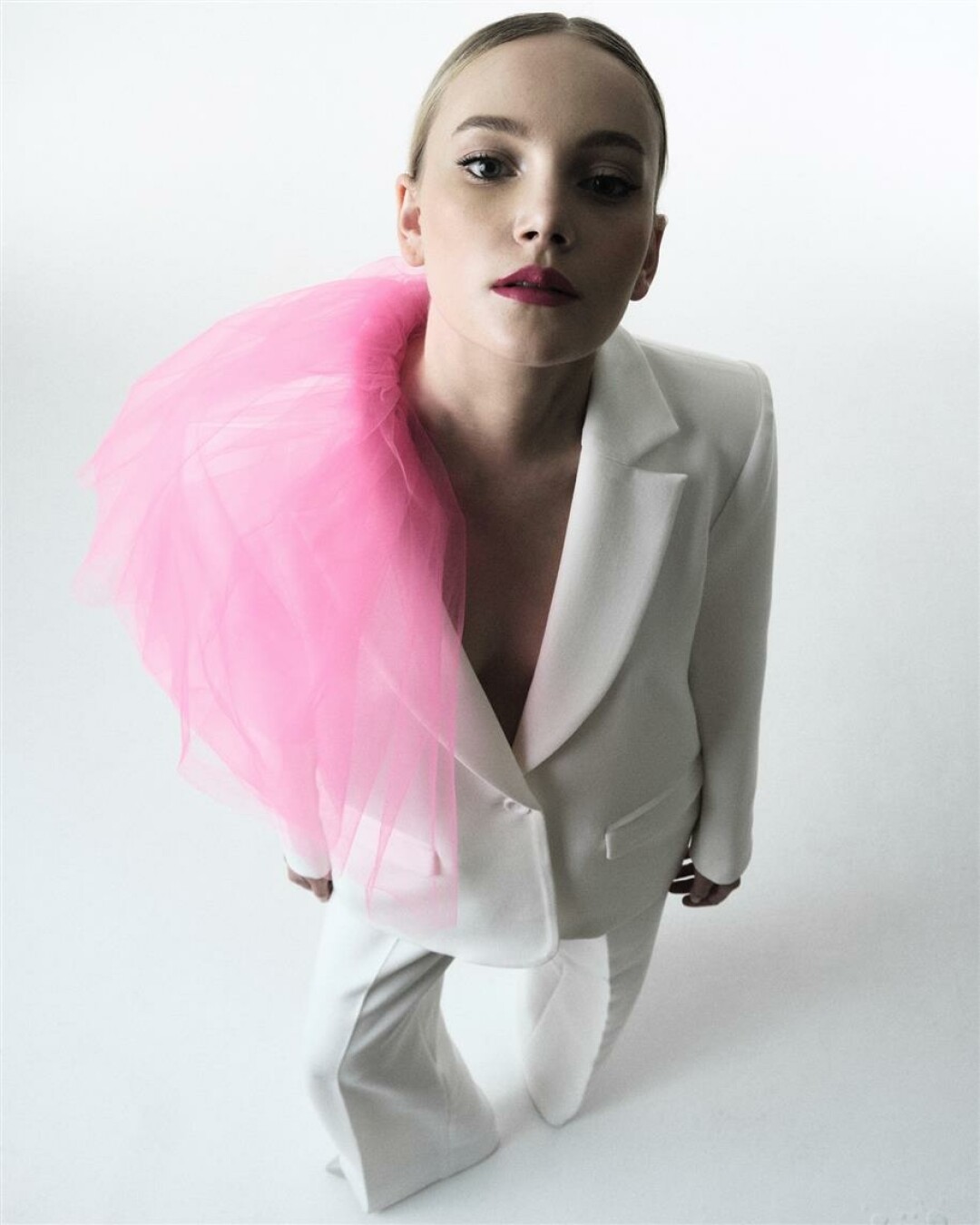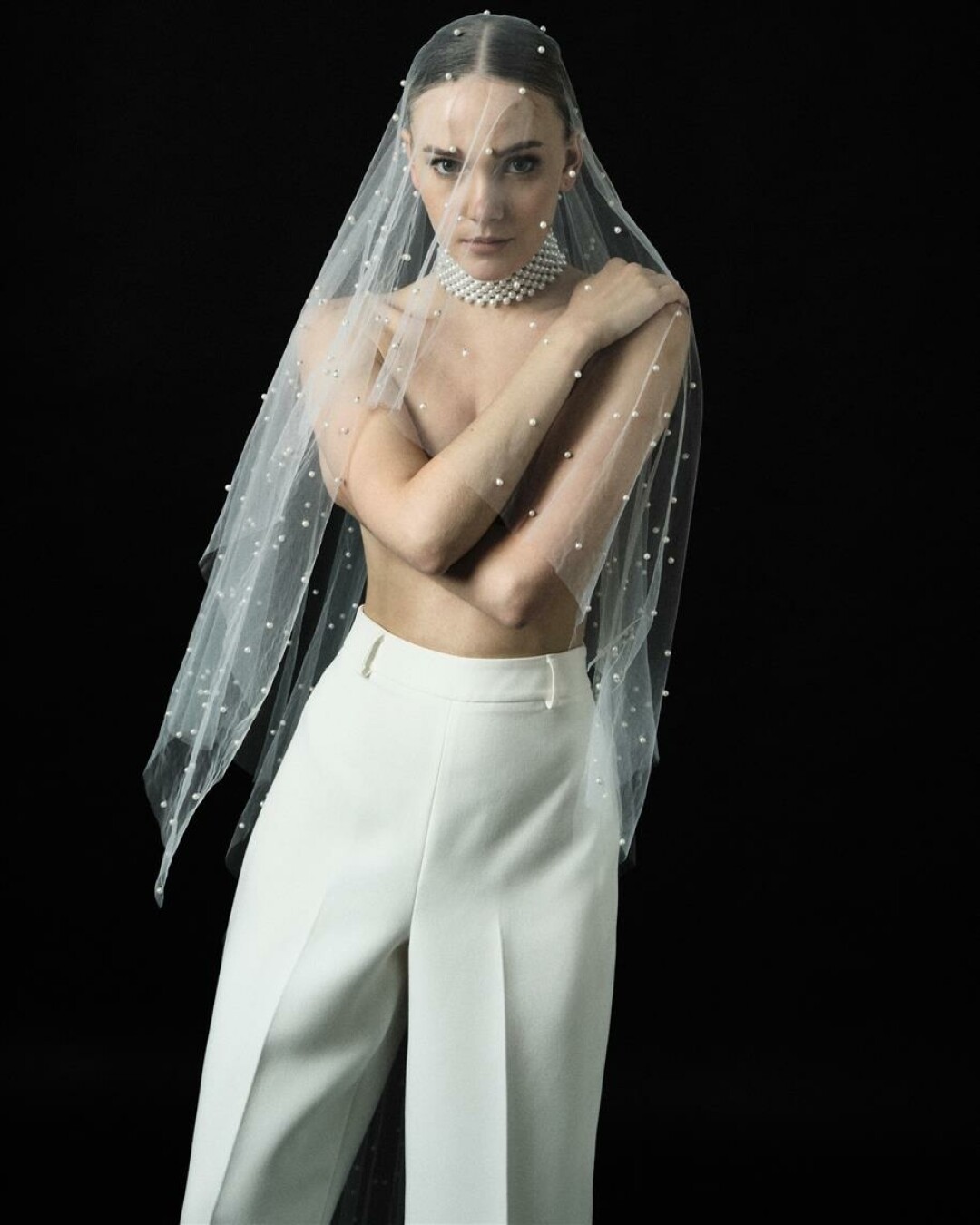 Можно поступить наоборот: остановиться на классическом молочном оттенке, а в качестве полигона для экспериментов выбрать материал. Примером такой стратегии стали твидовые костюмы с юбкой-шортами и брючные костюмы. И нет, в этом нет ни намека на нафталин: каждая невеста из числа тех, кто примерил твидовый костюм с правильными туфлями и стильными аксессуарами, подтвердит: в достойном обрамлении твид выглядит остросовременно.