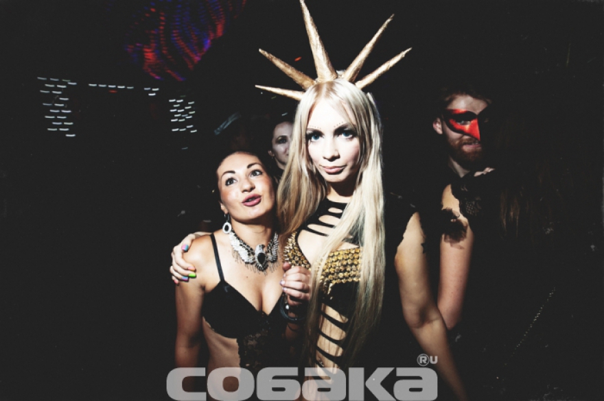 Телеведущая, модель и актриса Алена Водонаева приехала на "Лошадку" специально на привоз электроклэш-дивы Peaches. Свой пуританский по местным меркам костюм она дополнила фирменной фишкой главных красавиц вечеринки - кокошником. Вариации ореола вокруг головы любой формы и размера - от венка до остроконечного головного убора Статуи Свободы - придает любому образу королевский вид.