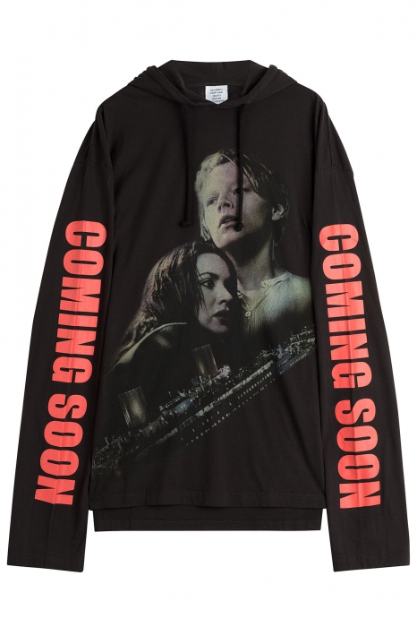 Штаб-квартира парижского бренда Vetements находится в криминальном районе Сен-Дени: туда боится заехать Анна Винтур, хотя, по слухам, и очень хочет. В шоу-руме играет техно и «Агата Кристи», а на рейлах развешаны цитаты из постсоветской реальности. Фартуки из клеенки арт-директор бренда Демна Гвасалия подсмотрел у своей сухумской бабушки, шарфы в стилистике русского рока — у свой правой руки, стилиста Лотты Волковой родом из Владивостока. Еще в коллекции есть вещи-постеры — например, с «Титаником». Унисекс-худи с Кейт и Лео, которые напоминают о топиках российских подростков в начале 2000-х, приехали в бутик DayNight (64 000 руб.).