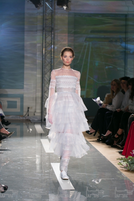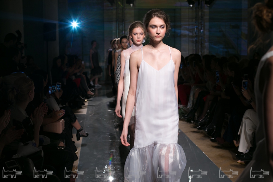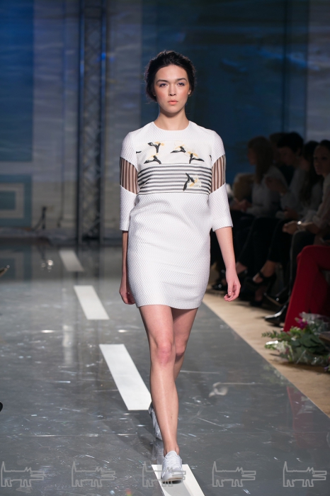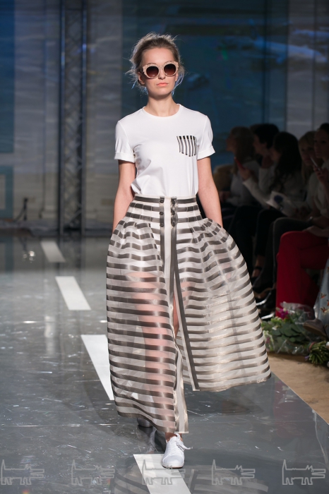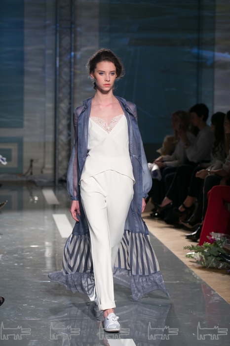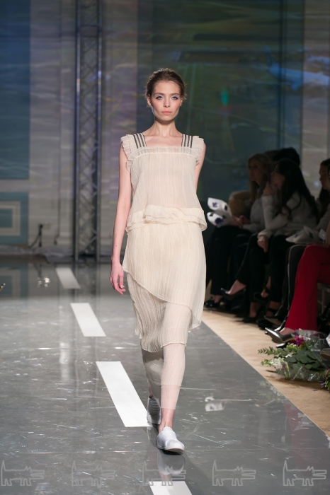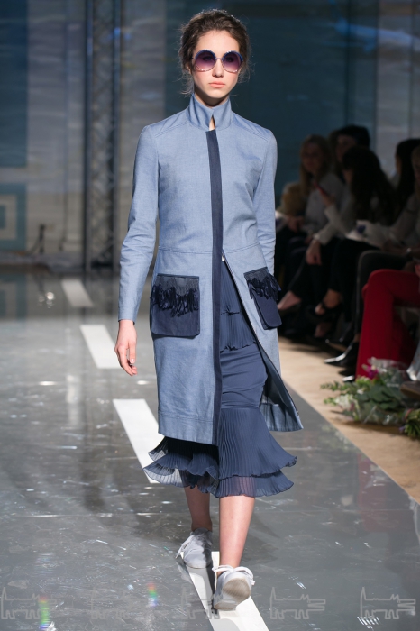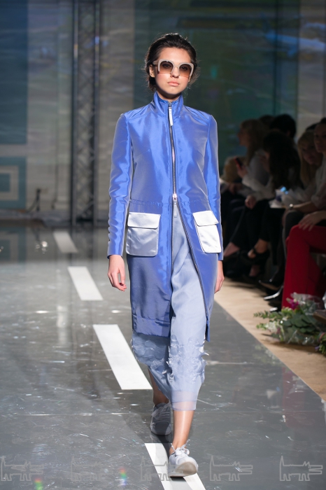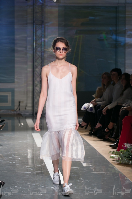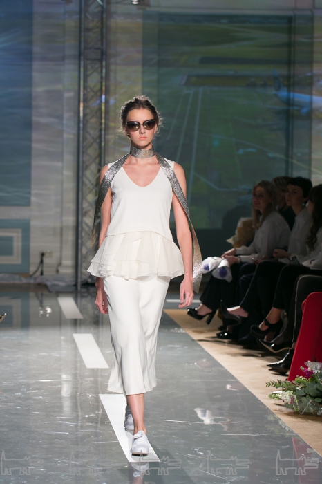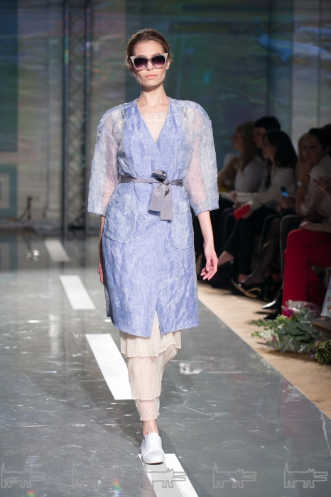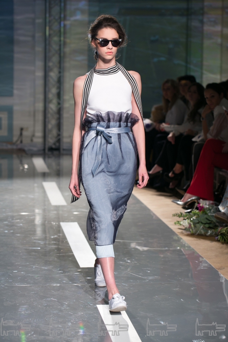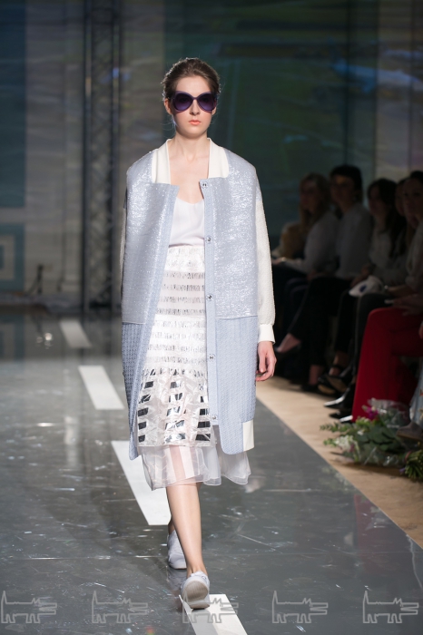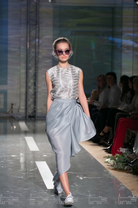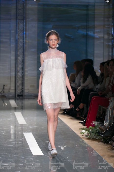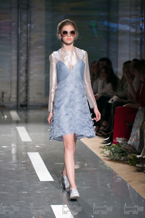 Юлия Матвиенко и Валентина Крупник, прошлой осенью запустившие собственный бренд JM Studio, вчера показали дебютную коллекцию «Небо. Петербург. Девушка» из тридцати луков в зале «Пеликан» FREEDOM palace. Сознательно отказываясь называть себя дизайнерами, девушки, по их словам, не изобретают велосипед, а транслируют собственный тенденциозный стиль. Все тренды недавней череды недель мод в изящном авторском исполнении можно было увидеть и на подиуме: платья в бельевом стиле, надетые на лонгслив, бомберы с круглыми плечами, брюки-кюлоты, кружево в сочетании с широкой полоской, шарфы-ленты, пайетки. Альтернативой характерной для нашего климата черно-графитовой «зимней» гамме дуэт выбрал серый, голубой и белый цвета, провозгласив их летней палитрой петербургской девушки. Все луки, показанные на подиуме, — в лучших традициях smart sexy: запредельно женственные, но без намека на кричащую сексуальность. Кстати, ткани для коллекции были куплены в Италии, а производство находится в том же здании на Казанской, 7, поэтому любую вещь можно подогнать по фигуре.