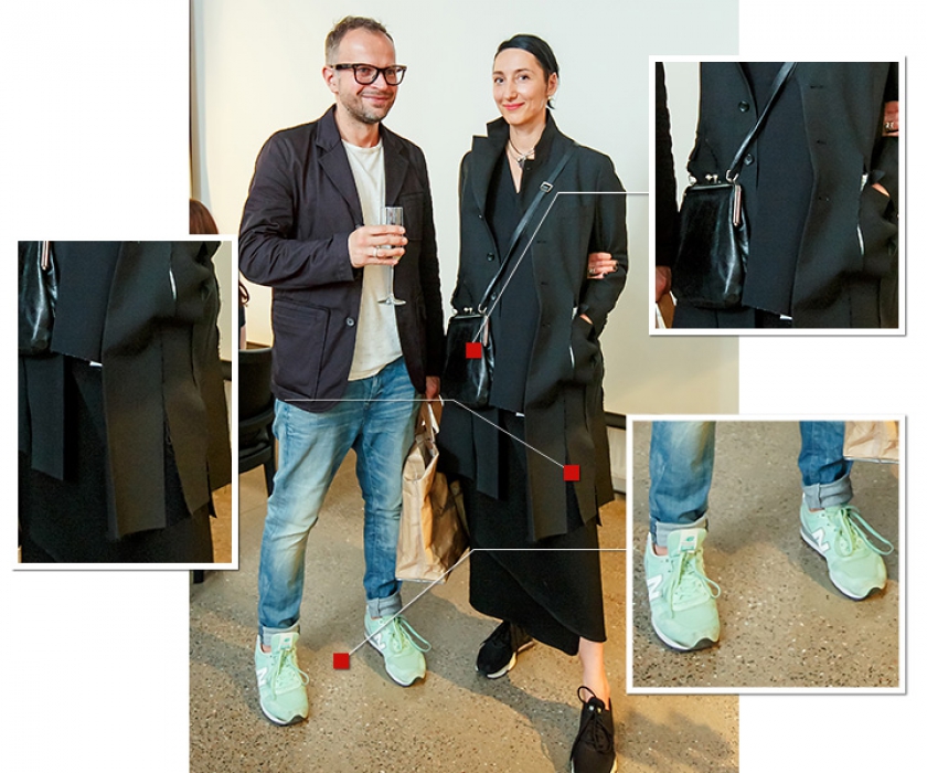 «Мы не уверены, что художники вообще задают стиль. Многие художники, на мой взгляд, одеваются ужасно. Смотришь — и сразу видно: вот он, креативный подход» — рассказали нам художница Наталья Пивко и скульптор Денис Прасолов в недавнем интервью. Наташа, мы готовы поспорить! Пальто Comme des Garcons, юбки и топы JNBY, еще и в сочетании с кроссовками, идут не всем, а тот, кто смотрится в этом гармонично — точно задают стиль.
