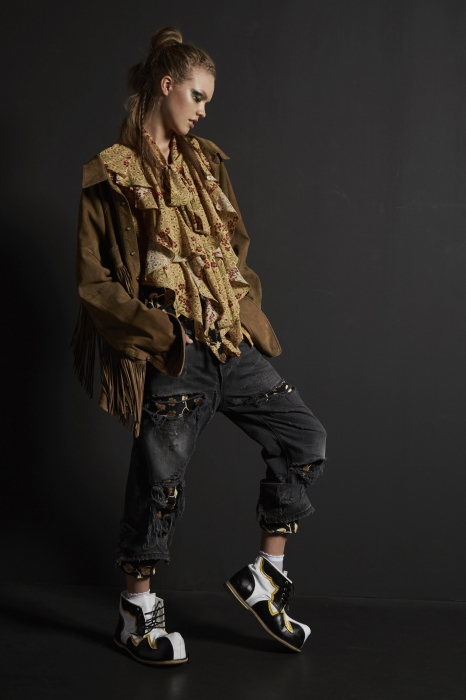 Французская марка, основанная Иланом Делуи, известна кожанками, бомберами и вещами в милитари-эстетике. А чуткие байеры DayNight закупили марку как раз в тот момент, когда коллекции перестали быть слишком серьезными: осенью, например, в мультибренд приедут смешные штаны, как у рабочих, только из вельвета, широченные джинсы, корсеты из восьмидесятых и куртки коровьей раскраски с бахромой.