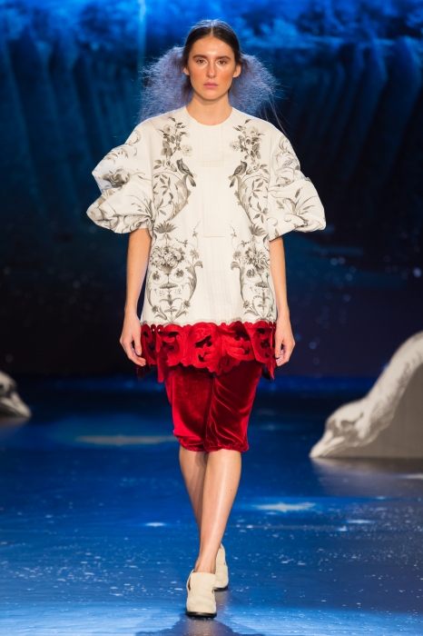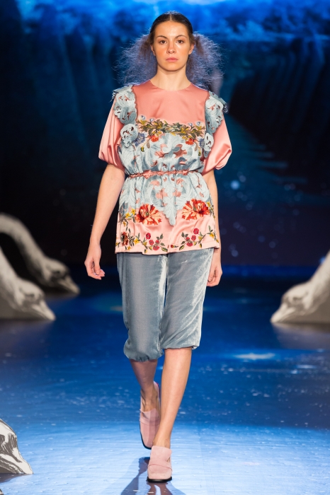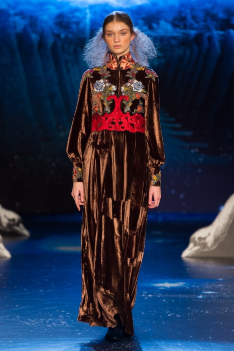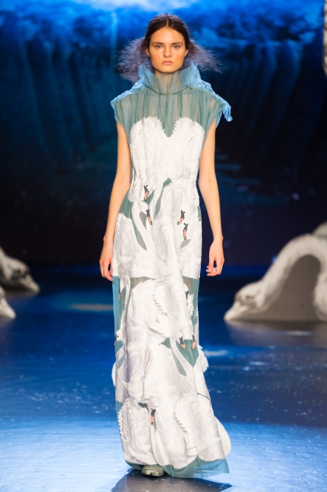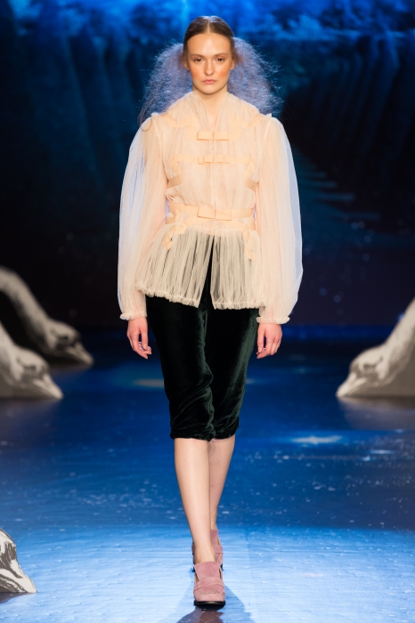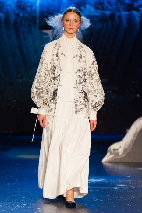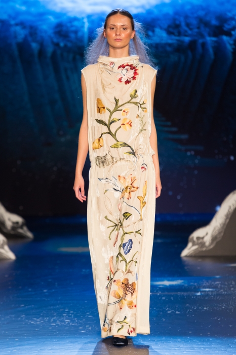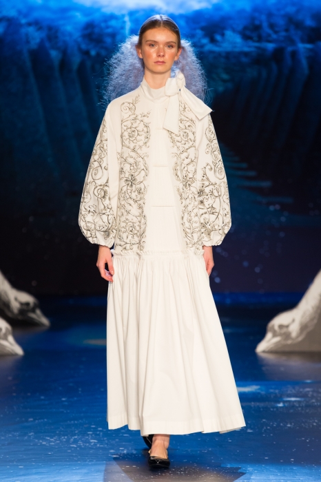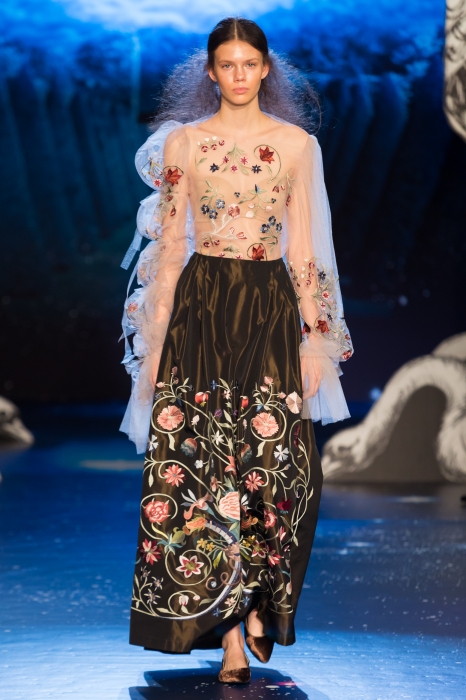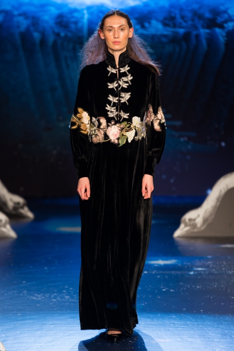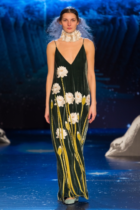 Каждый стебель арабесок и лилий в коллекции был вышит вручную, а затем расшивался стеклярусом не один день. Несмотря на сложносочиненную вышивку, перфорированные перья лебедей на подолах платьев и плиссированный шелк, некоторые комплекты легко можно представить в повседневности: например, изумрудные бархатные штаны, которые уже завоевали наши сердца и вишлисты.