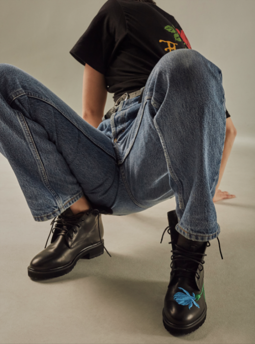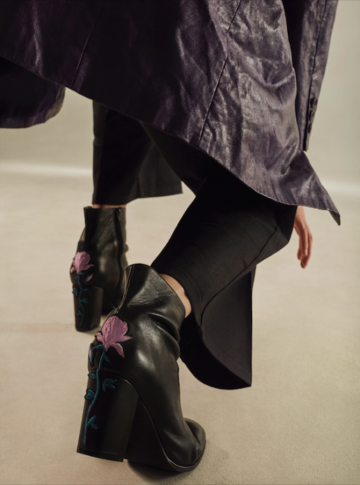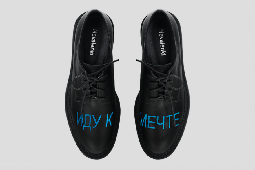 Магазин Даши Миловидовой Nevalenki Concept Store выпустил собственную коллекцию обуви. В ней — ботинки с цветочной вышивкой на каблуках, туфли в мужском стиле с вышитой надписью «Иду к мечте» и ботильоны с контрастным красным каблуком.