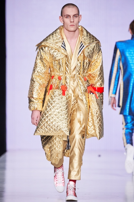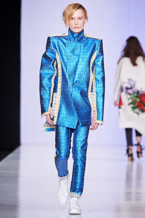 Мы увидели бархатные костюмы, шелковые запринтованные комплекты, пестрые бомберы с пэчворком и бахромой и стеганые куртки в золотых и серебряных вариациях. А еще остроумный стайлинг, который планируем повторить в следующем сезоне: например, сочетание цветочного платья с кожаными жилетами и как минимум три принта в одном луке.