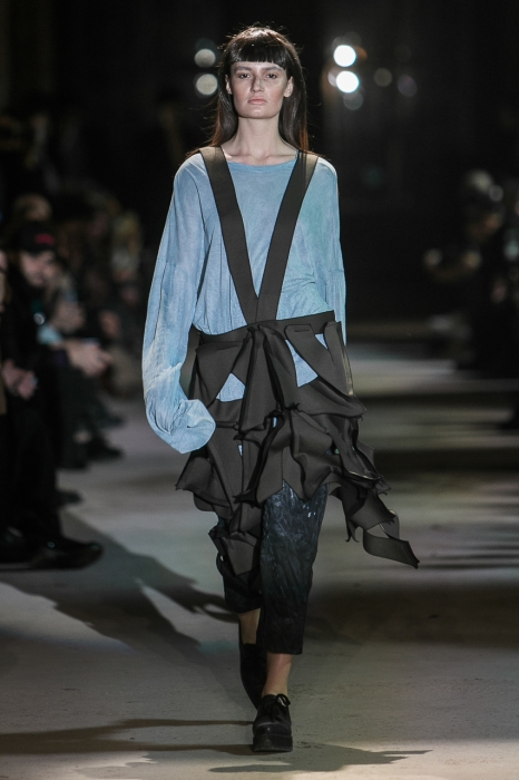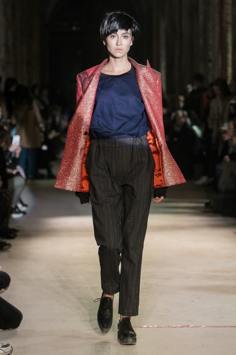 Концепция бренда Pirosmani всегда звучала так: antipodium. Женя Малыгина делает одежду вне сезонов и вне тенденцией, а теперь еще и показывает ее не на подиуме Mercedes-Benz Fashion Week в Москве, а в стенах машиностроительного завода «Арсенал».