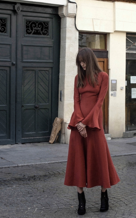 Бренд из Петербурга MY812, который мы открыли для себя в июне этого года, выпустил новую осенне-зимнюю коллекцию. В ней — пиджаки-пальто, расклешенные брюки, платья самых модных оттенков сезона и абсолютно прозрачные блузы. Последние дизайнер Альбина Зуева предлагает носить вместе с бюстгальтером, игнорируя всеобщий тренд на обнаженность, — интеллигентная марка проповедует консерватизм и умело вписывает его в современность. Здесь на помощь команде приходит стайлинг: роль пуговиц для однобортных жакетов играют заколки, инфантильные платья в цветок утяжеляют массивные ботинки, а классические брюки со стрелками дополняют бабуши, которые еще несколько сезонов назад ввел в моду Gucci.