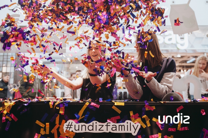 В новом магазине Undiz расположились не только десятки полок с одеждой, но и огромная ванна с 120 кг блесток. Сфотографировавшись в ней (или в любой другой локации), поставив хештеги #undizfamily и #undizspb и подписавшись на Instagram марки, можно стать амбассадором Undiz в России и получить год бесплатного белья в подарок. Контент бренда в социальных сетях (с целым полумиллионом подписчиков!) формируется только за счет постов покупателей марки — и, сделав лучшее фото на открытии магазина до 2 мая, легко попасть в их число. Итоги будут объявлены на сайте Undiz 7 мая.