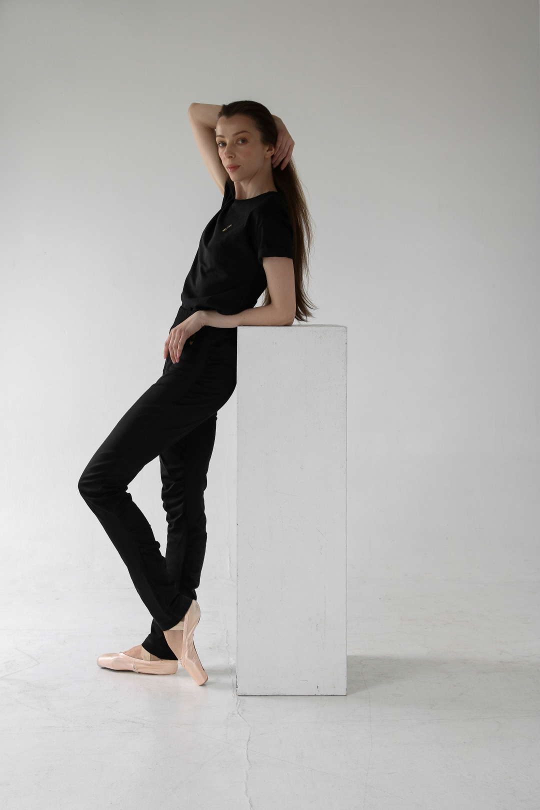 В первую коллекцию вошли боди в бежевом и черном цветах, леггинсы, принимающие форму тела, легкая юбка из хлопка, спортивный костюм с шелковыми лампасами, дутый жилет и минималистичные повседневные платья. Здесь нет любимой Татьяной Валентиновной вышивки, прозрачных тканей и эфирных силуэтов, зато все вещи позволяют телу дышать и обеспечивают полную свободу движений — протестировано балеринами.