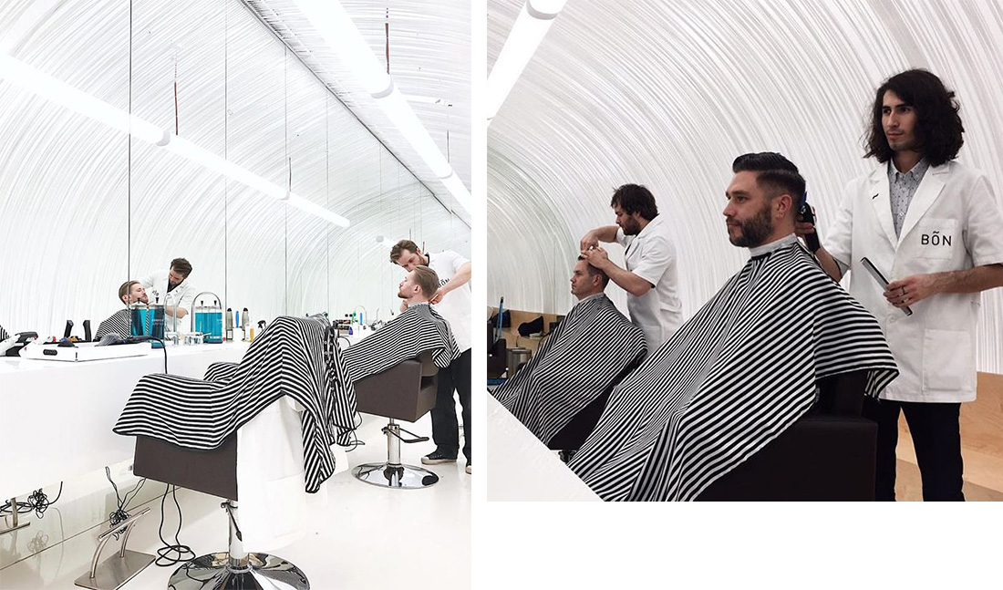 За мужскими стильными прическами можно отправиться на второй этаж Au Pont Rouge в парикмахерскую BÕN. Философия барбершопа строится на принципе: имидж — это не просто дань моде, а часть повседневной привычки. Здесь продумана каждая деталь, каждой мелочи придается значение, начиная от тильды (типографского знака) в названии парикмахерской BÕN и заканчивая двубортными белоснежными халатами, формой одежды мастеров. Среди постоянных клиентов звездные имена: Александр Кержаков, Сергей Шнуров, Покрас Лампас.