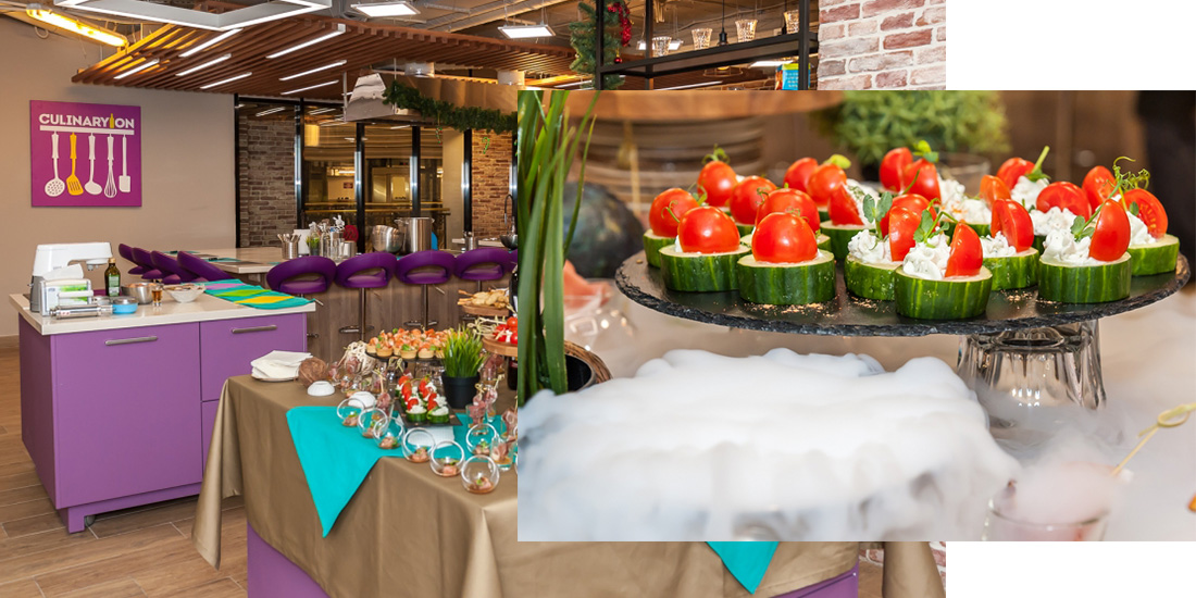 На последнем этаже универмага Au Pont Rouge с полгода назад открылся развлекательный кулинарный центр Culinaryon. Здесь почти каждый день проходят мастер-классы, включающие более 900 блюд итальянской, французской, испанской и других кухонь мира. Названия блюд, которым предлагается обучиться, на голодный желудок лучше не читать: паштет из печени индейки с луково-вишневым мармеладом, салат с артишоками и грейпфрутом, брускетта с авокадо и грушей бальзамик, мороженое с крамблом и лисичками — все это и многое другое можно научиться готовить всего за несколько часов. Кроме того, студия Culinaryon оборудована для проведения мероприятий любого формата — от корпоративов, конференций и тимбилдингов до частных вечеринок, дней рождения, девичников, свадеб и детских праздников.