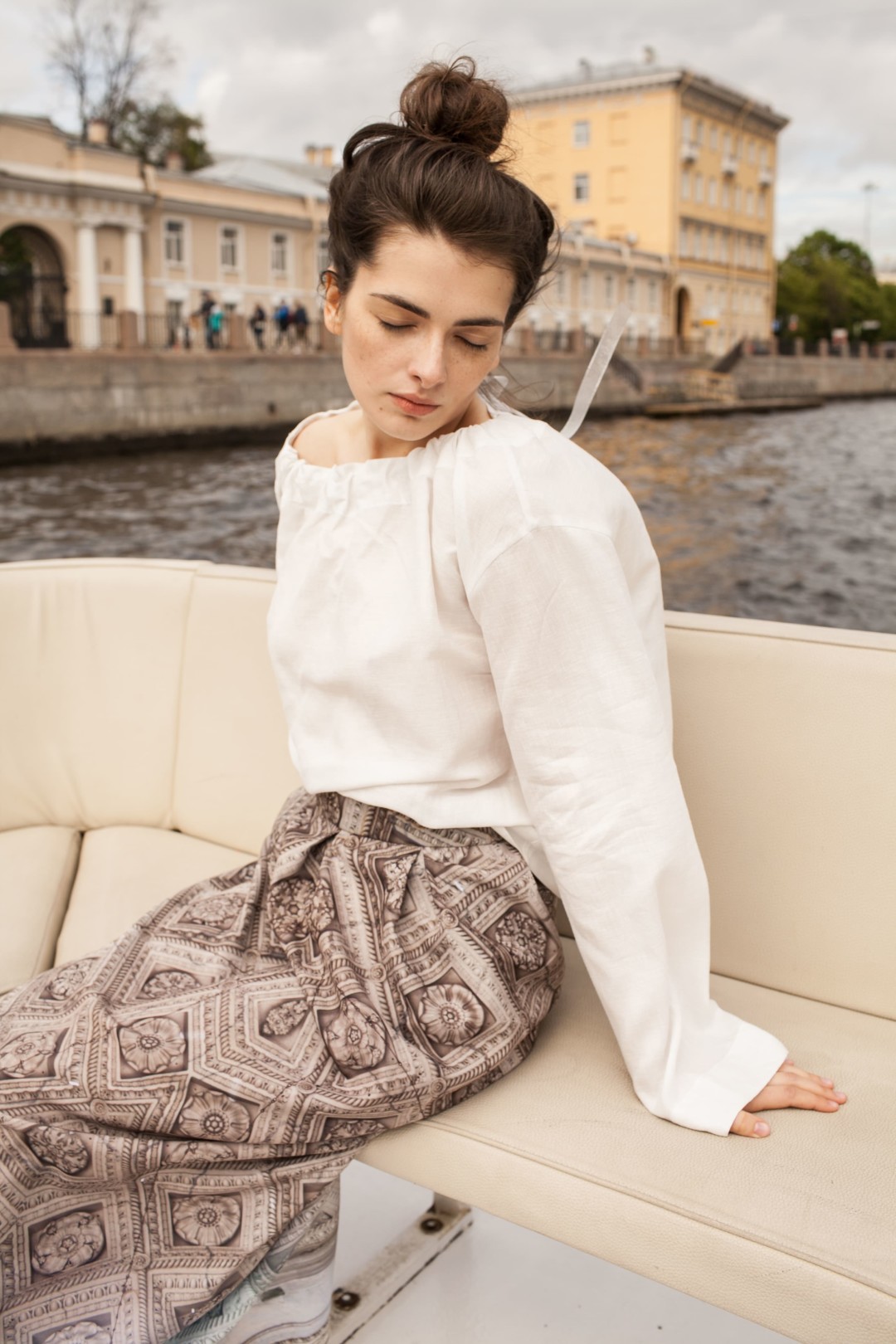 Лауреат премии «ТОП 50. Самые знаменитые люди Петербурга» Наталия Лескова, разорившая индустрию кружек, футболок и сноуболов с видами городских достопримечательностей, показала рекламную кампанию своей весенне-летней коллекции. В качестве локации для ее съемки дизайнер выбрала Михайловский замок, Цирк на Фонтанке и Исаакиевский собор, сменяющие друг друга на протяжении водной прогулки и частично повторяющиеся в принтах топов, сарафанов и юбок.