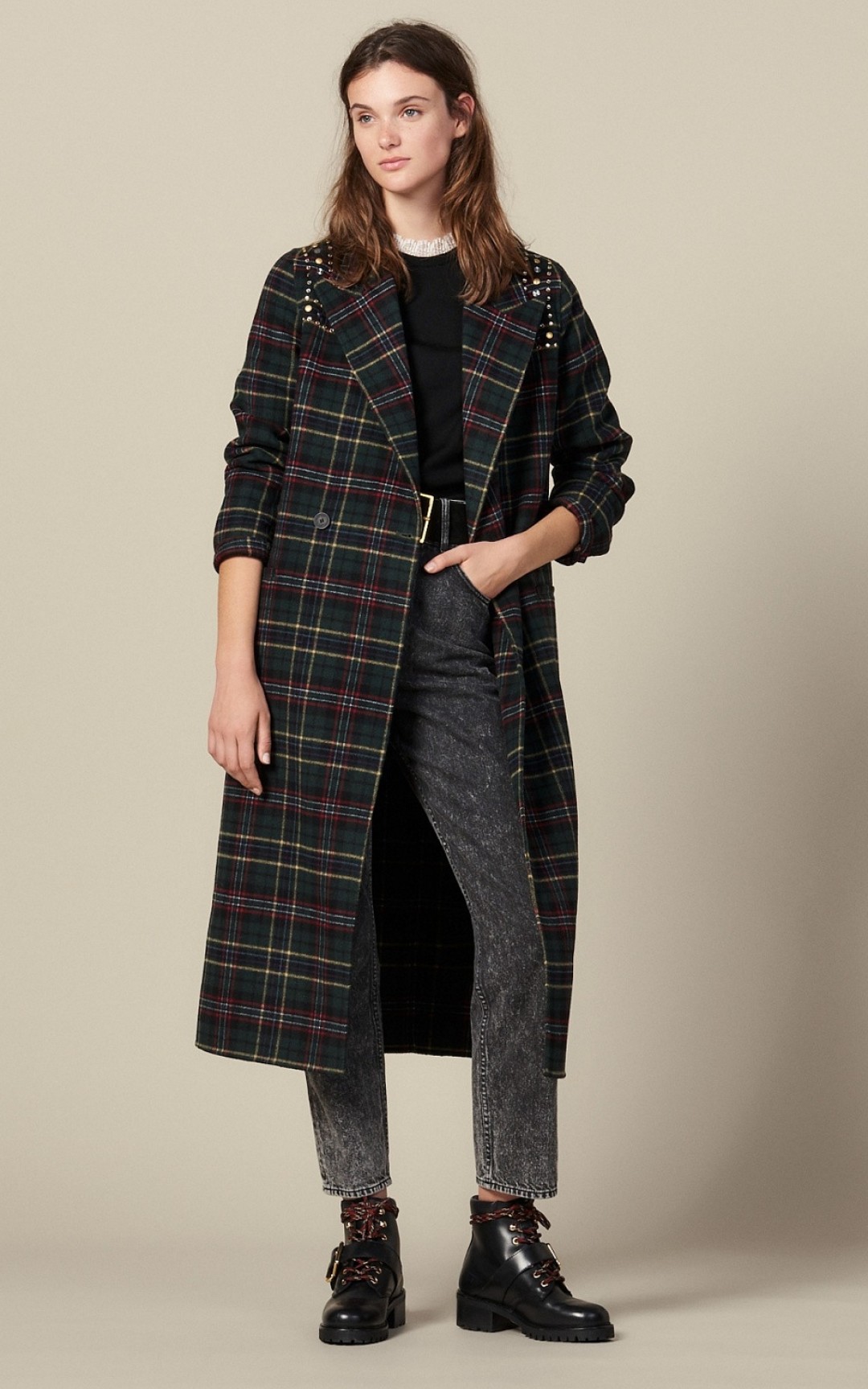 Наша верхняя надежда сезона — от Sandro! Нарядное пальто с принтом в шотландскую клетку и сложными деталями-заклепками будем носить кэжуально — с джинсами и водолазками, а пуховики — с блестящими платьями из люрекса и роскошными плиссироваными юбками! (Au Pont Rouge)