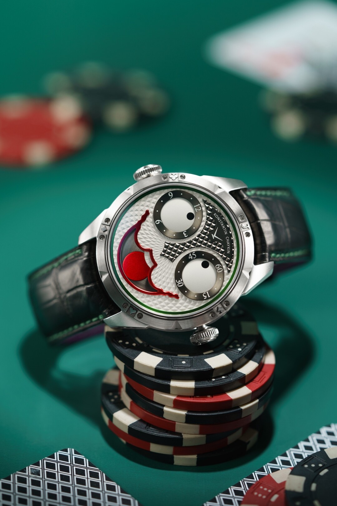 В этом году Константин Чайкин, член Академии независимых часовщиков (AHCI), представил на выставке Masters of Horology в Женеве новые часы — Joker Classic из коллекции «Ристмоны». Можно без преувеличения сказать, что ценители ждали этого момента последние семь лет — с тех пор как в 2017-м на BaselWorld появился и мгновенно всех покорил первый «Джокер». И хотя потом Чайкин выпустил около 30 разнообразных лимитированных вариантов часов с антропоморфным циферблатом, коллекционеры мечтали о возвращении легенды, и их ожидания оправдались.