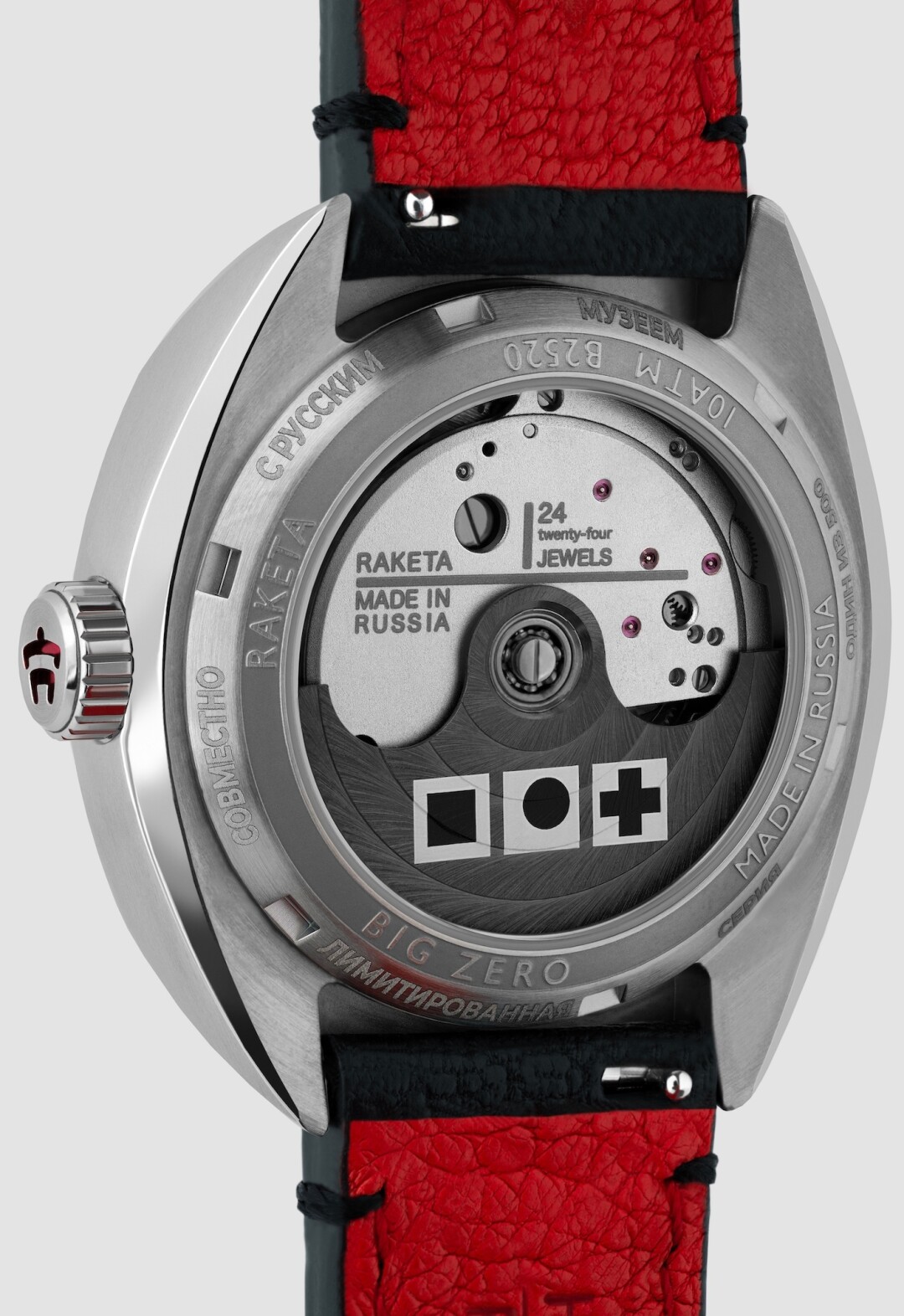 В коллаборации с Русским музеем завод представил коллекцию из трех моделей в стиле Казимира Малевича. Простейшие геометрические фигуры, в которых художник видел традиционные символы Вселенной, отсылают к ДНК «Ракеты», связанной с космосом и его преломлением в искусстве.