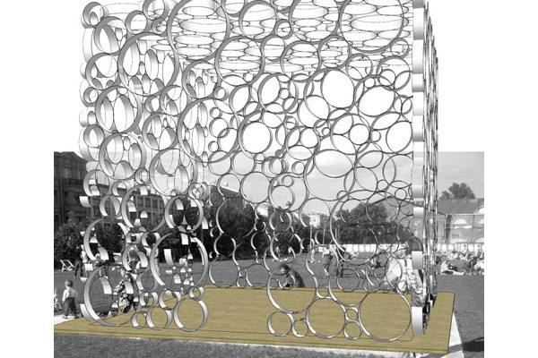 «Этот объект относится к серии экспериментов с трубками. Мы уже делали трубчатый зеркальный павильон для Цветного бульвара в Москве, где множеством несущих конструкций служили очень тонкие стальные трубки. В пузырчатом павильон реализован другой принцип конструктивного решения из труб уже большего диаметра, когда куски трубы складываются торцами, наподобие каменной кладки. Должна получится легкая и совершенно необычная полупрозрачная конструкция. Стены и перекрытия растворятся, но при этом образуют внутри себя эффектное пространство. Надеемся, качество сборки не подведет» |