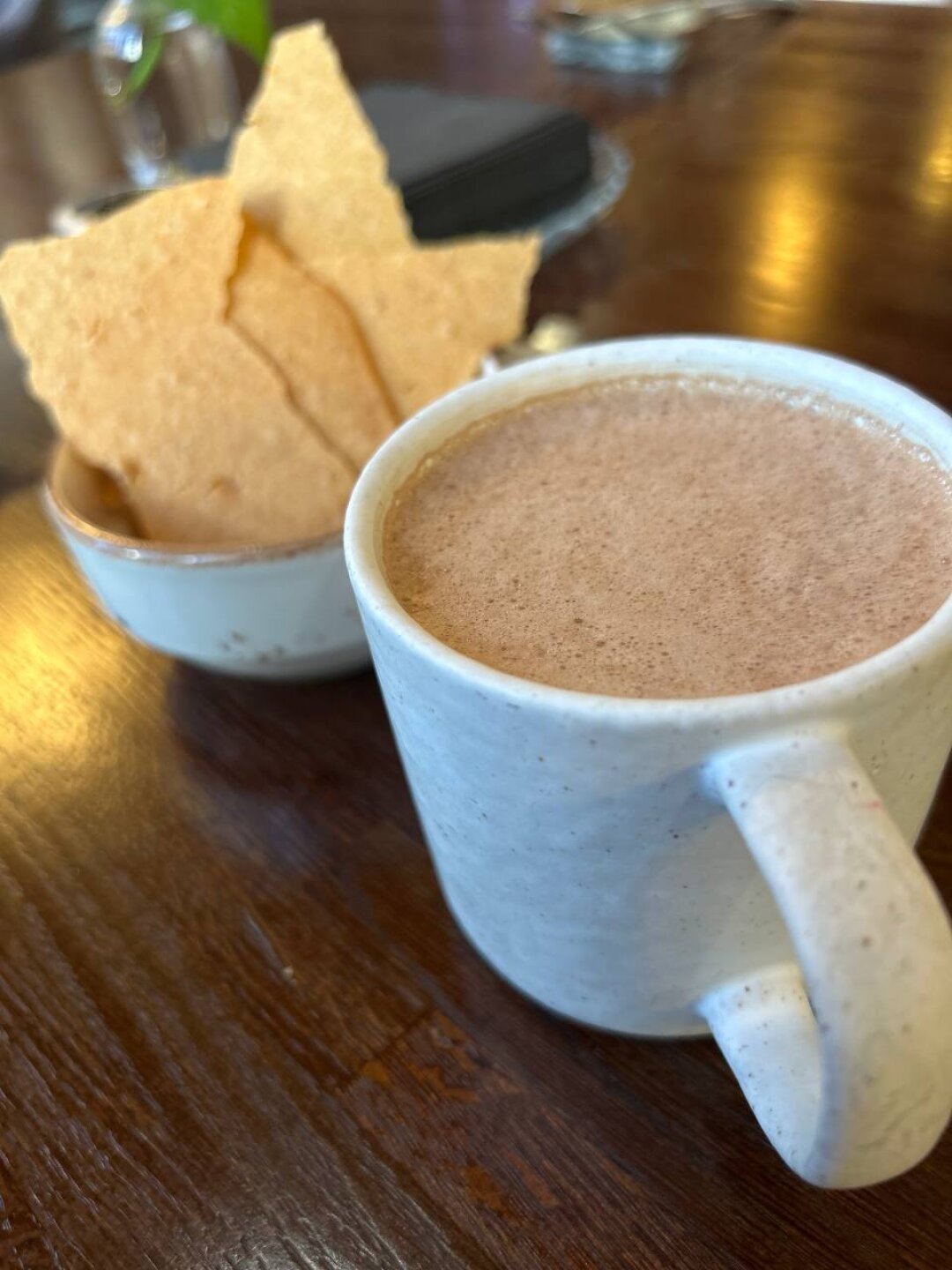 Обычное какао со взбитой молочной пенкой. Понравилось, что не пересластили, не понравилось, что совсем не угадывается вкус байкальской травки. Сообщила об этом официанту, она пошла исправлять; после обновления мой какао заблагоухал саган-дали и стал для меня невозможно приторным. Как решили вопрос – понятно, не понятно, почему с балансом беда такая.