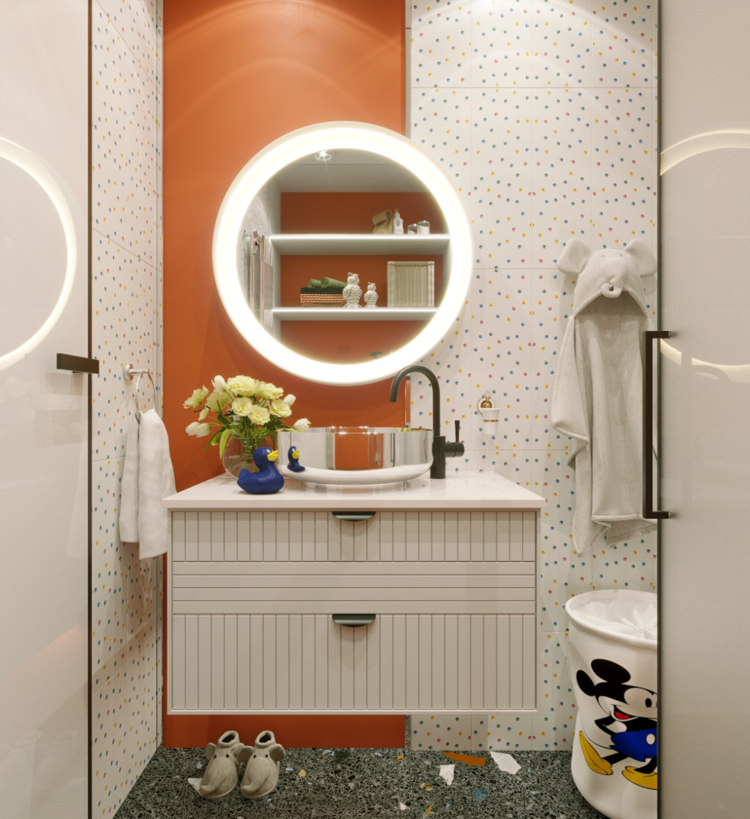 Интерьер целого дома я «подбирала» к красному унитазу. Получилось необычно.