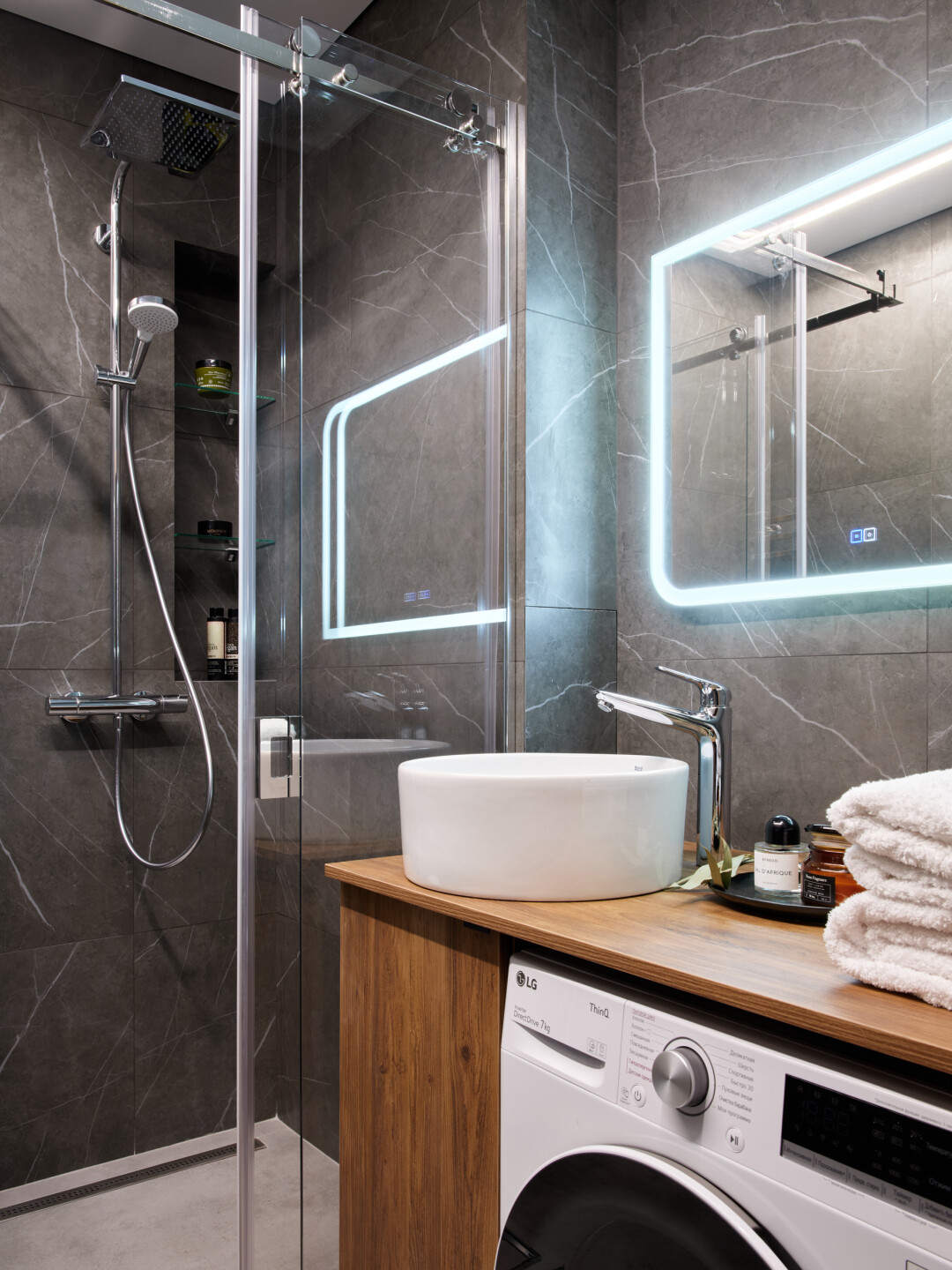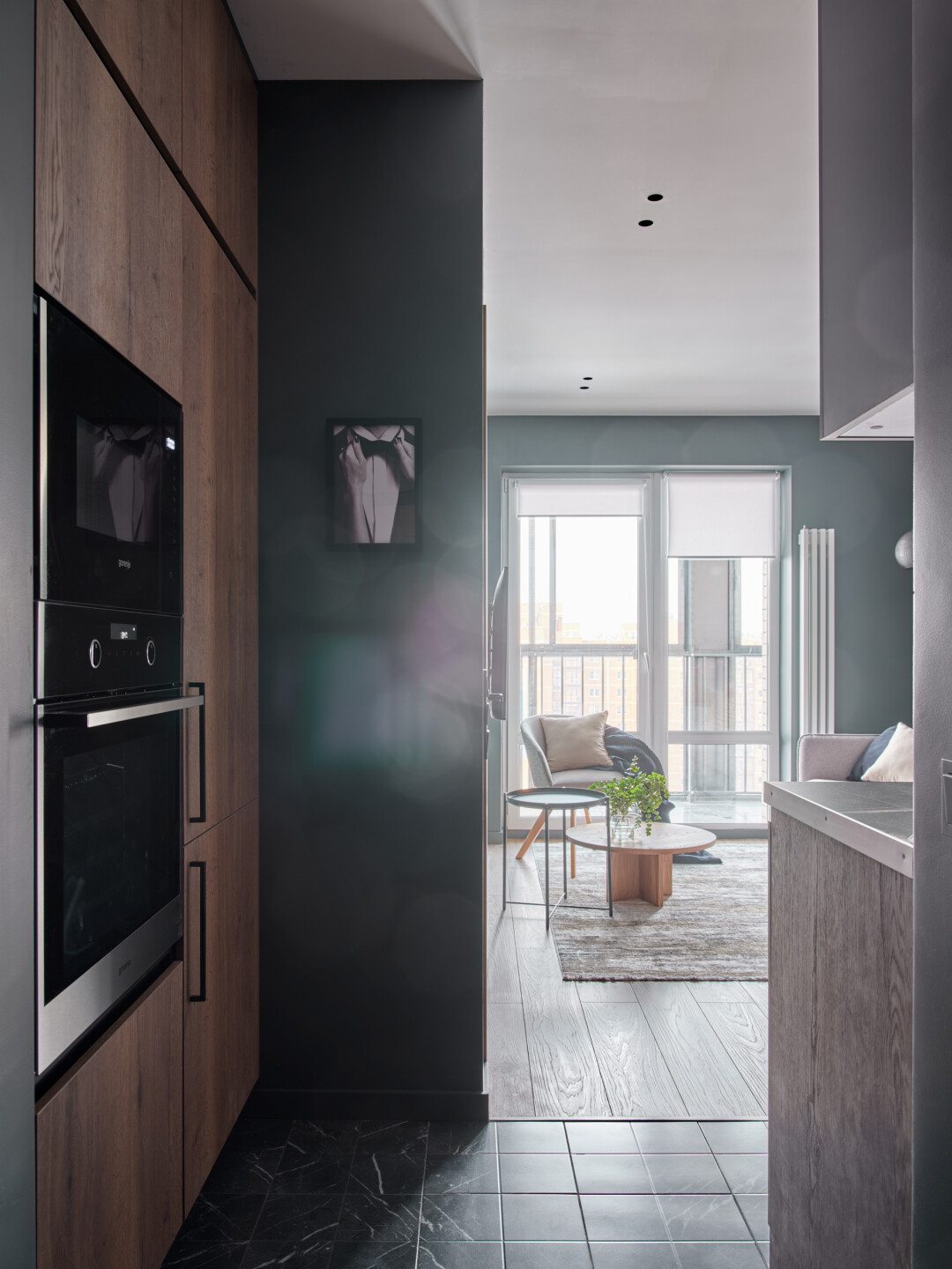 Площадь квартиры изначально небольшая, поэтому мы решили выполнить пространство в единой минималистичной стилистике. Правильная расстановка приоритетов и акцентов позволила это воплотить в лучшем виде.