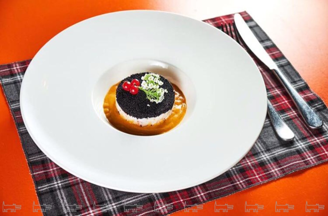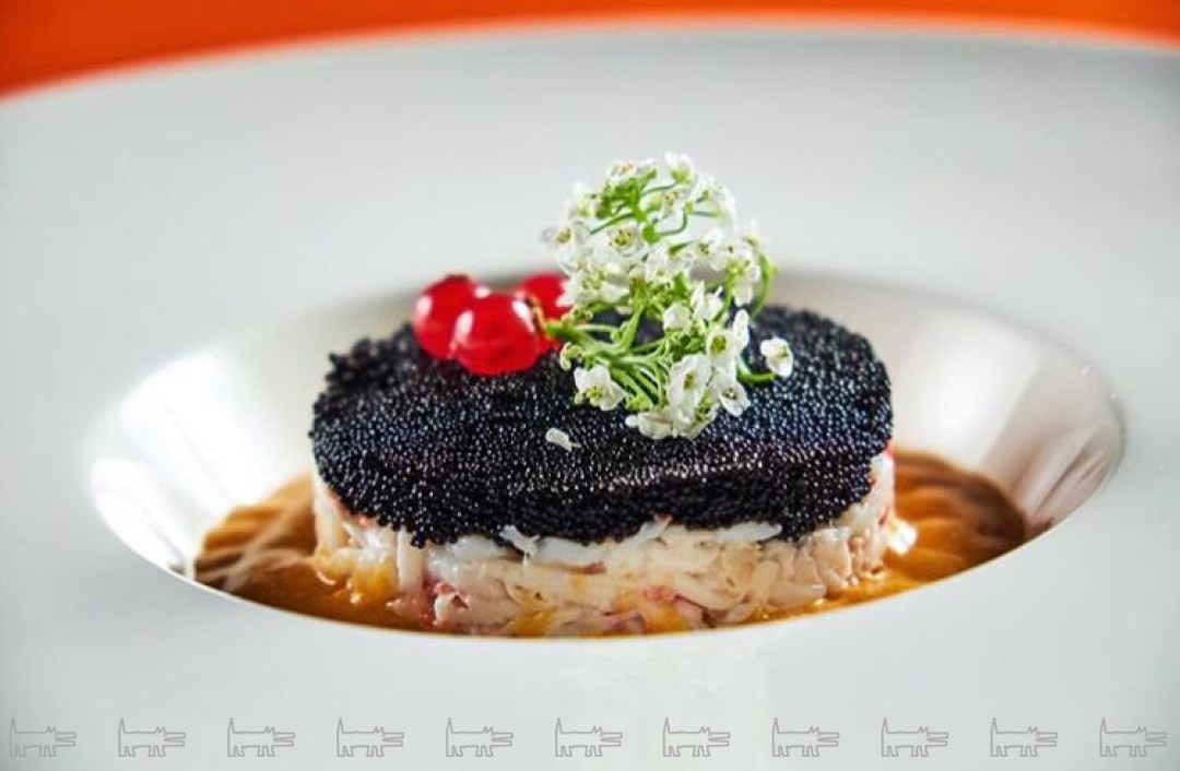 Тар-тар из камчатского краба с креветочным биском